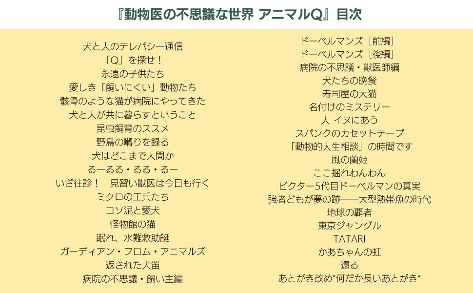 名獣医が明かす、動物たちの愛と奇跡! 笑いと涙、そしてミステリーに満ちた感動のエッセイ『動物医の不思議な世界 アニマルQ』 2月27日発売!
