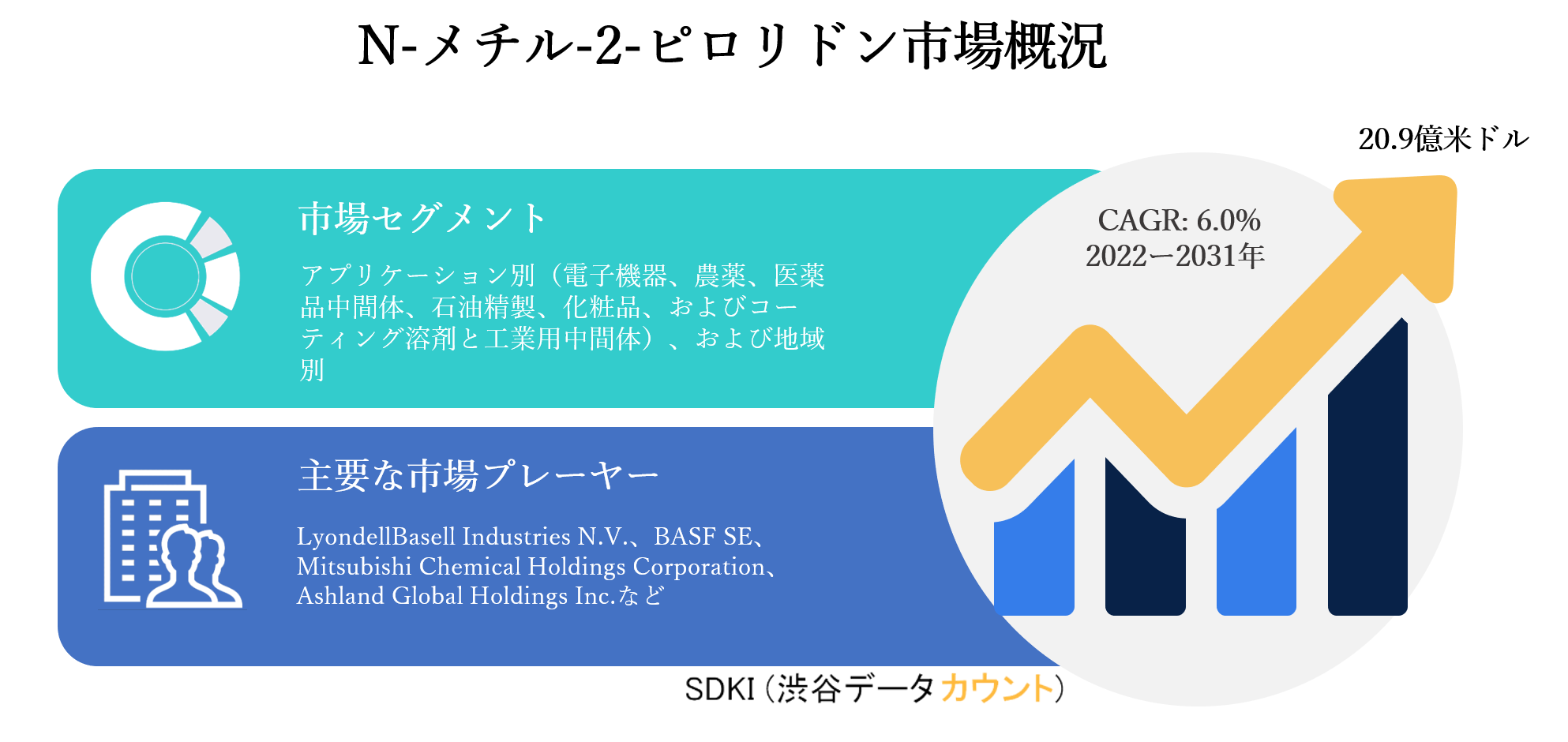 N-メチル-2-ピロリドン市場は、2022年に13.1億米ドルの市場価値から、2031年までに20.9億米ドルに達すると推定され、2022-2031年の予測期間中に6.0%のCAGRで成長すると予想されています。