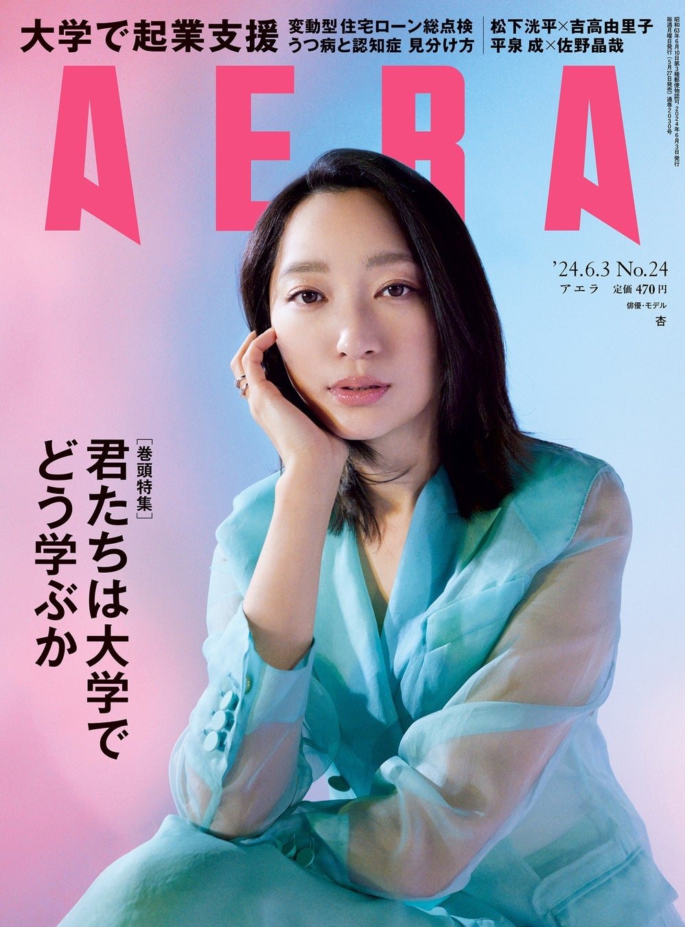 5月27日発売のAERA6月3日号は、杏さんが表紙に登場。パリと日本の2拠点生活を送りながら様々な表現を続ける杏さんが、年齢を重ねたことでの変化や現在の暮らしについて語ります。巻頭特集は「君たちは大学でどう学ぶか」。著名人たちが大学での学びが「今」にどうつながっているかを語るインタビューに加え、大学の教育の最前線を取材しました。本格的な金利上昇時代が到来するなか、変動型住宅ローンについて仕組みを詳報し、これからに備えるための記事もあります。望海風斗さんのインタビューも収録。宝塚歌劇団を退団して3年、これまで言葉にしてこなかった思いに迫ります。大好評連載「松下洸平 じゅうにんといろ」は、新たなゲストに吉高由里子さんが登場。TBS系ドラマ「最愛」、NHK大河ドラマ「光る君へ」などで共演する二人。「ついに来てくれました!」という松下さんの言葉で始まる待望の対談は、今号から4回続きます。ほかにもさまざまな企画が詰まった一冊です。