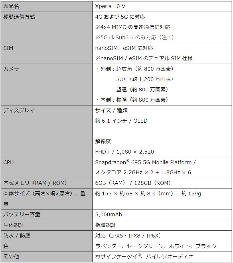 ※発売日時は、6月下旬以降に「Xperia 10 V」製品紹介ページなどでご案内予定です。