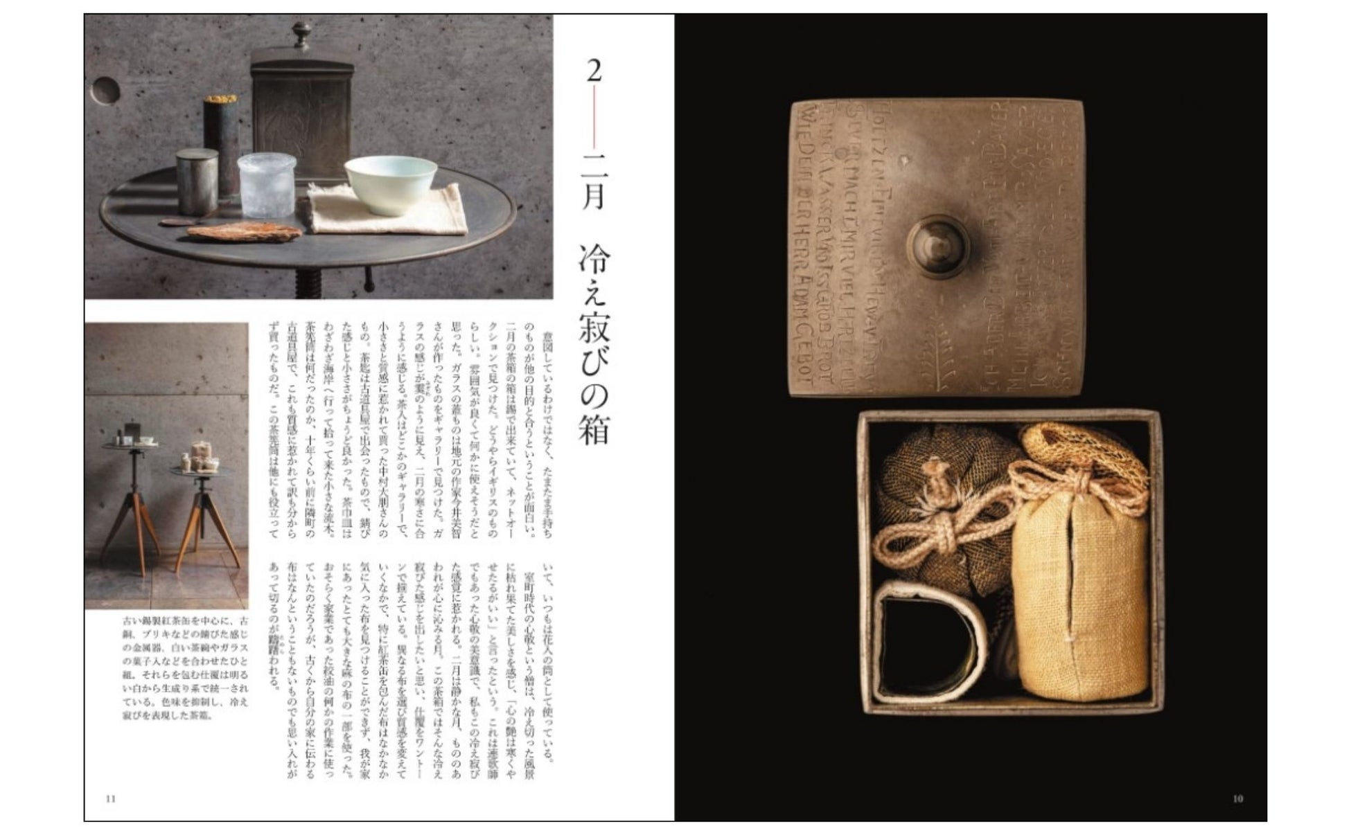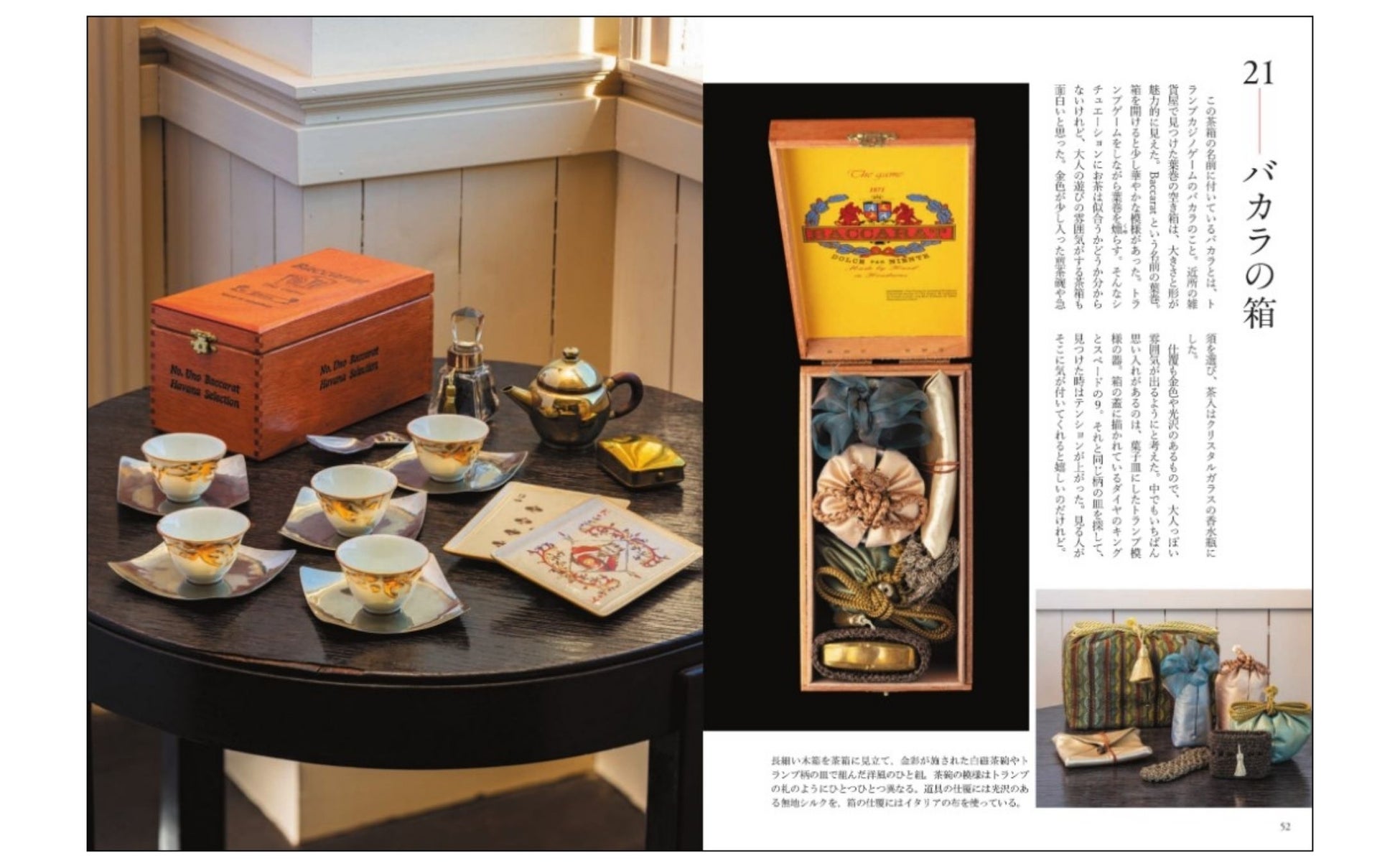 「私の茶箱は、私の思い込みや思い出が詰まったもので流儀のものとはまるで違うかもしれません。けれど作る時にはお茶のルールに従って道具立てをし、必ず箱に収まるように作りました。自由な発想から作っても、ルールがあって遊ぶほうがより楽しいと思っています」 (本文より)