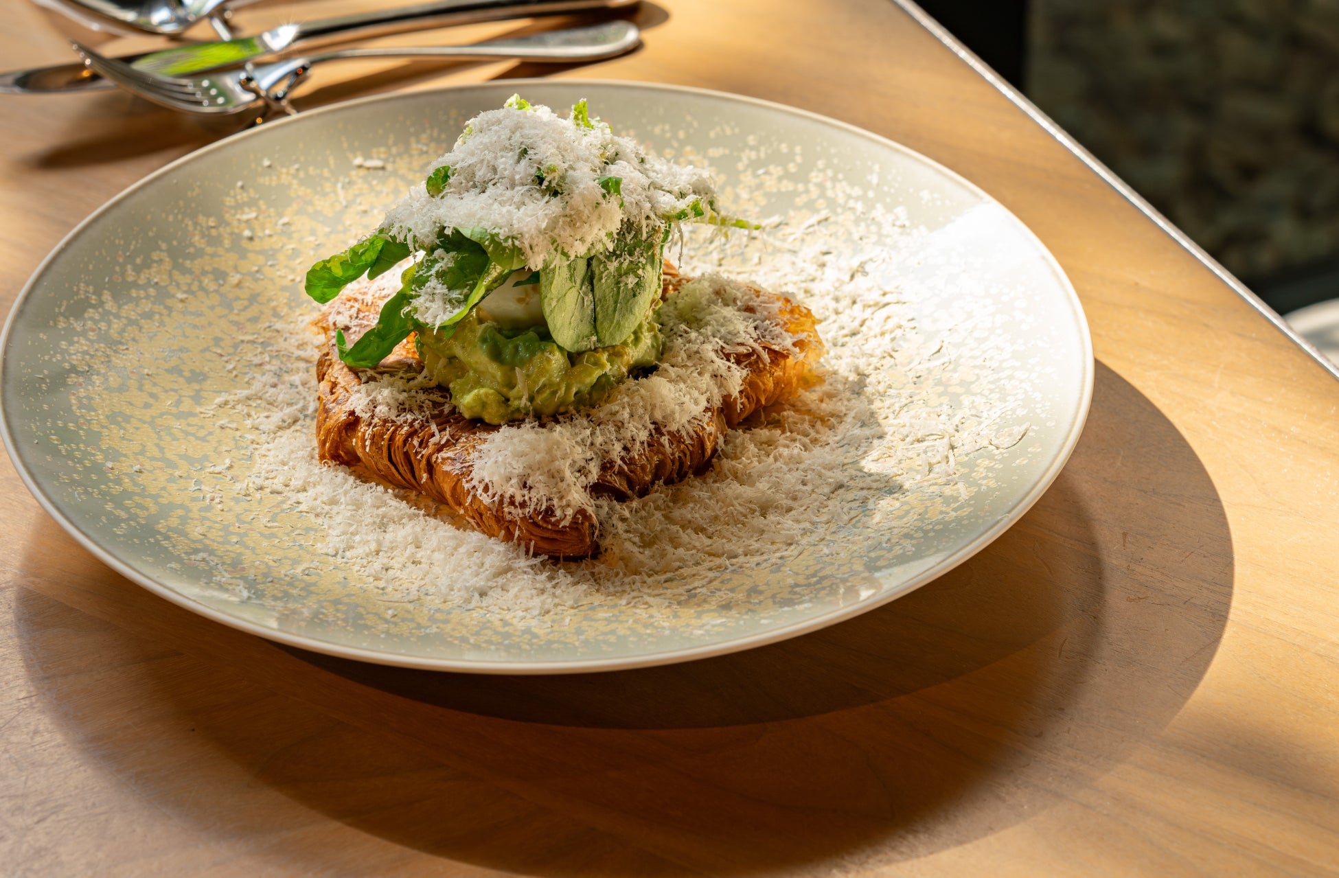 シグネチャーランチメニューは、前菜・メイン(本日のフレッシュパスタまたは「クロースト」クロワッサンのオープンサンド)・デザート・コーヒー又はKUSMI TEA from PARIS。
