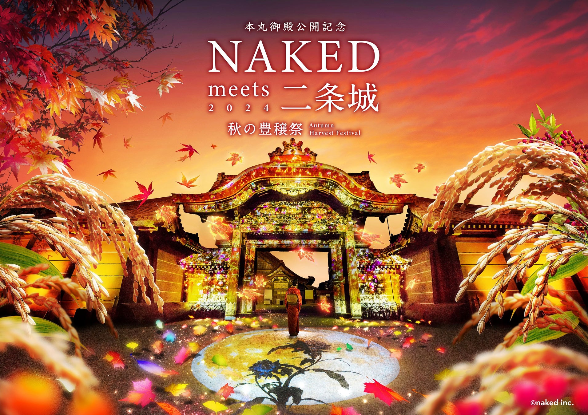 「本丸御殿公開記念 NAKED meets二条城 2024秋の豊穣祭」は、五感で京都の秋を味わうアートなおまつり。プロジェクションマッピングや光の演出で彩られた夜の二条城を五感でお楽しみいただけるイベントです。https://event.naked.works/nijojo/autumn/ja/