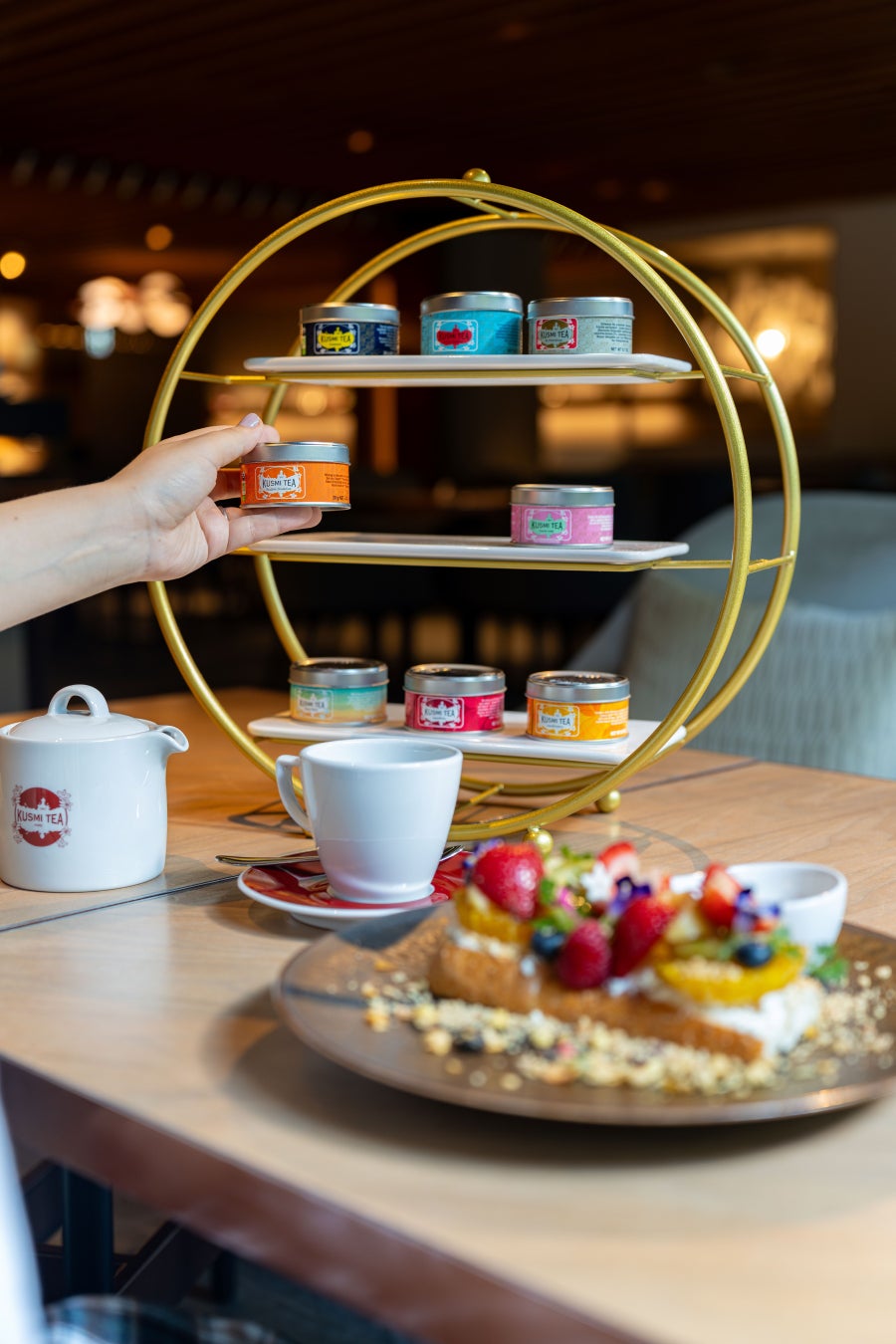 プランご利用のお客様は、シェフ特製秋のデザートと共に、コーヒー又は、フランスのオーガニックディーメゾン「KUSMI TEA」9種類よりお選びいただき、17時までごゆっくりレストランをご利用いただけます。(お料理のご提供は15時までです)