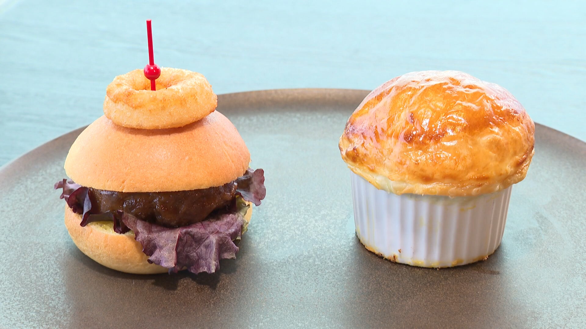 フレンチのシェフが手掛けるこのランチは、アフタヌーンティーのセイボリーをイメージし、見た目もかわいらしい料理10種とスイーツ3種が楽しめます。料理では、冷製8種と温製2種をご用意。温製料理では、肉質がきめ細かく、あっさりした脂と甘みのある瀬戸牧場の瀬戸のもち豚が主役の“ココット焼き”と、ジューシーなパティにこだわったハンバーガー“R.T.B(リーガトップバーガー)”が味わえます。