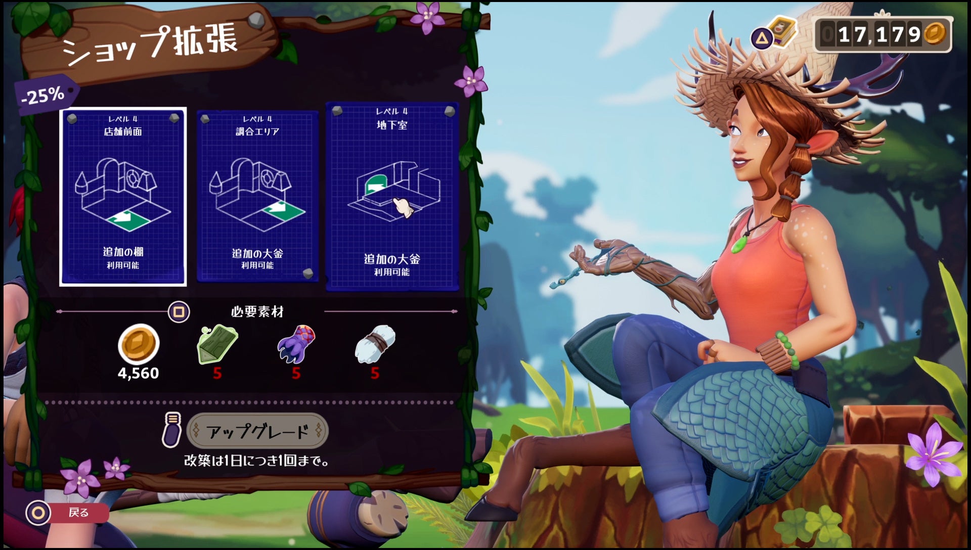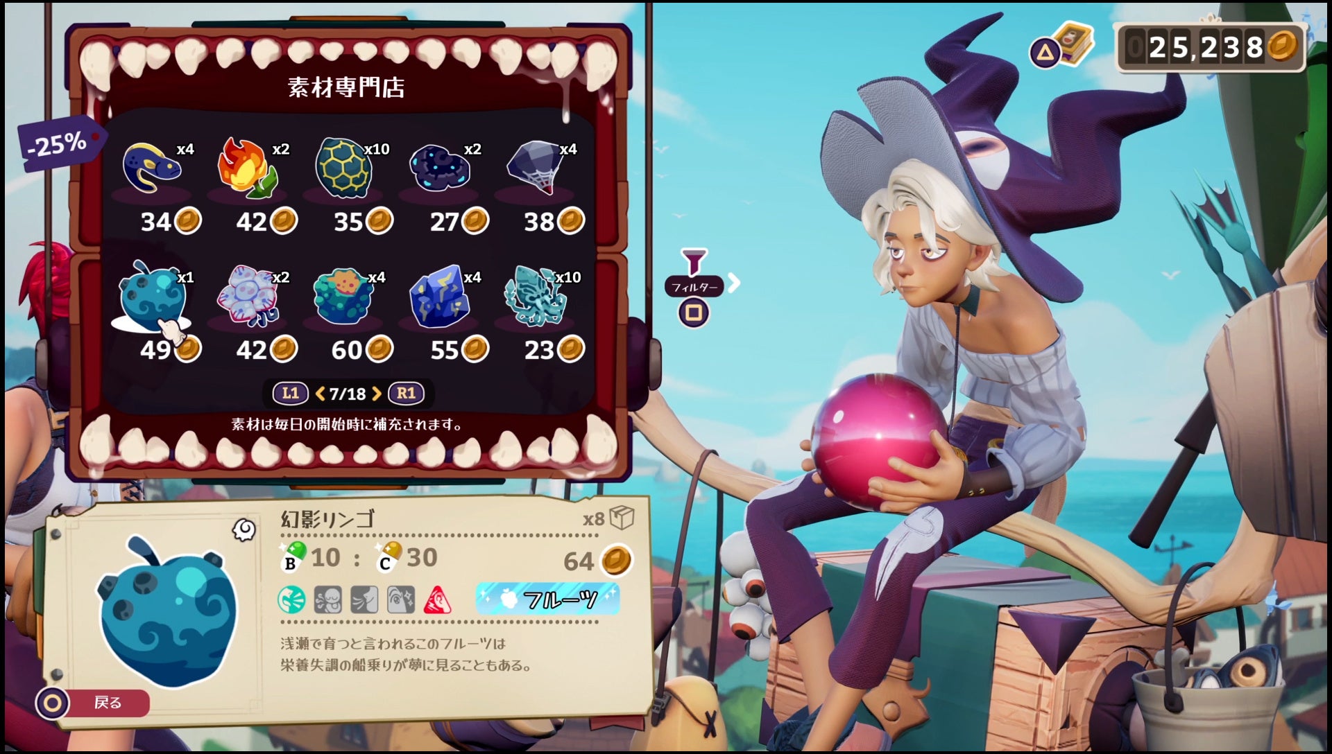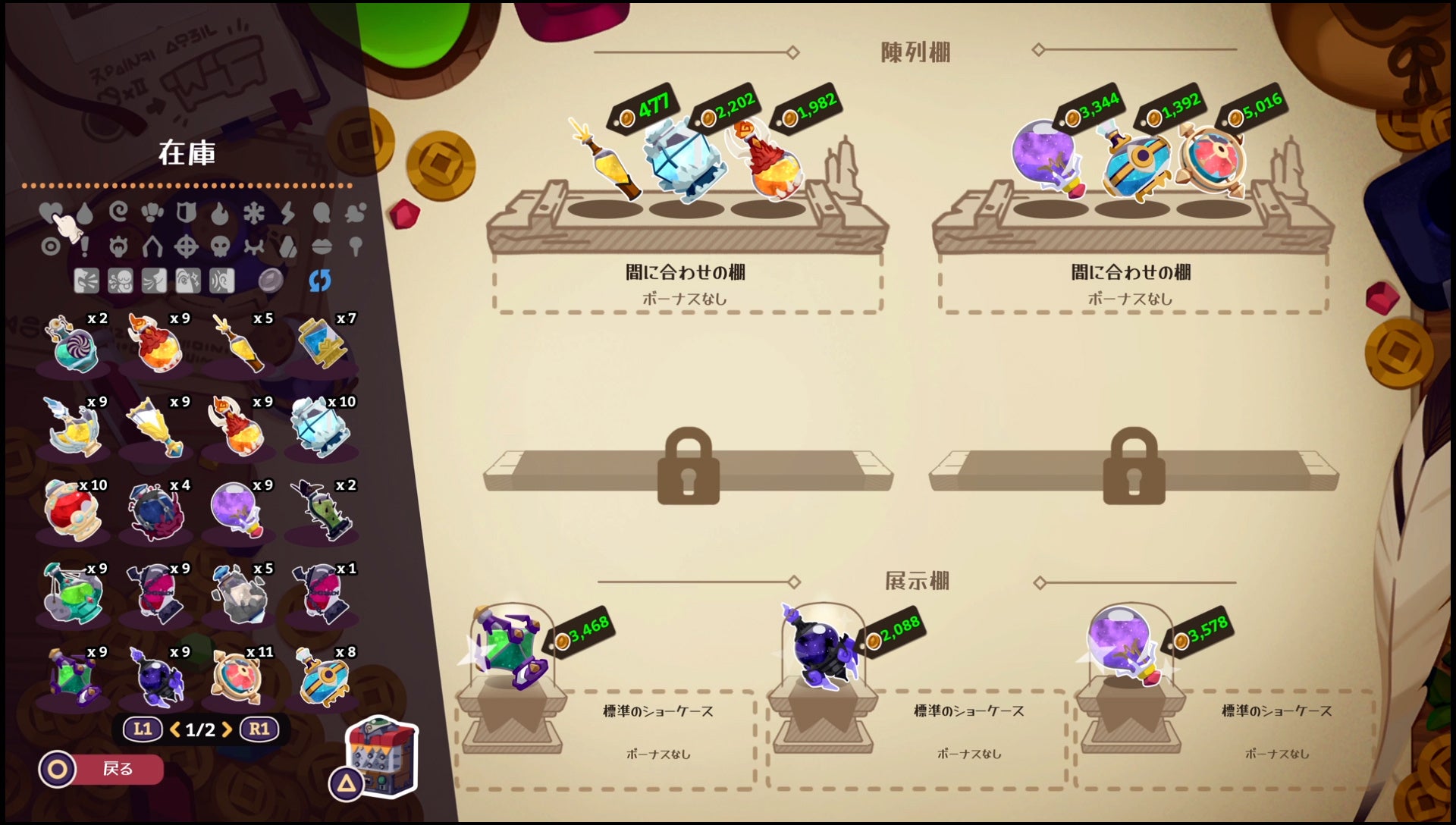 さらに釜や陳列棚を変えれば、より多くの素材を調合して品質を上げたり、商品の価格が上がったりするので、いろいろ試してみよう。