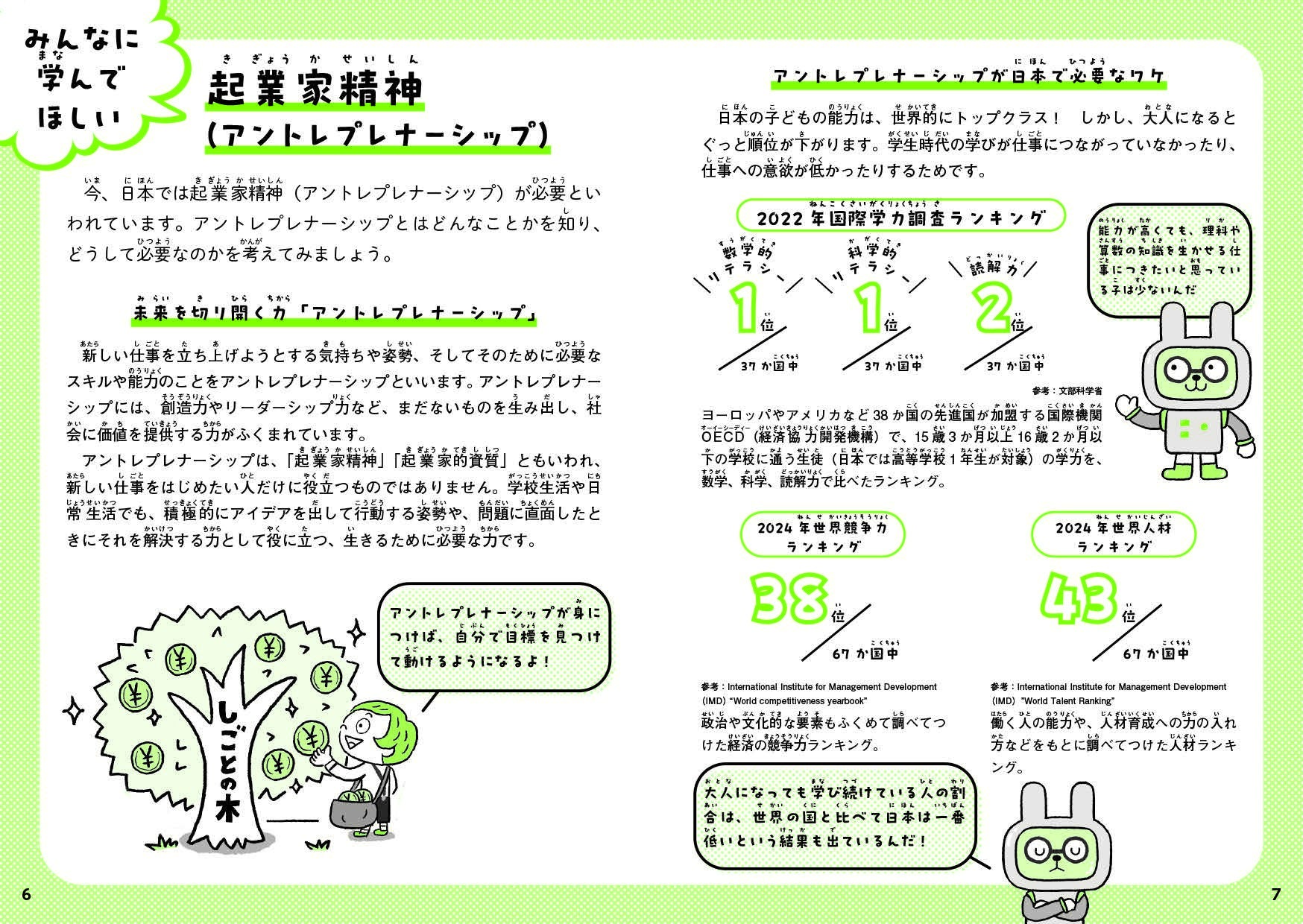 本書はアントレプレナーシップ教育のトップランナー企業を監修に迎え、子どもたちに向けて会社づくりや経営に必要なノウハウをわかりやすく解説しながら、これからの時代を生き抜くために必要な知識とスキルを学んでもらう一冊。専門的で難しい用語もたくさん出てきますが、子どものうちに知っておいて損はない会社づくりや経営に関する実用的知識が盛りだくさん! 子どもだけではなく、親子で読んで楽しく学べます。