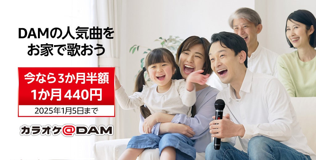 キャンペーン内容: 上記キャンペーン期間中に「カラオケ@DAM」を、Fire TVシリーズ、FireタブレットシリーズもしくはAmazon.co.jpのカラオケ@DAMアプリ詳細ページからご契約いただいた方に、1ヶ月利用チケット880円(税込)が、初月を含め有料期間開始日からの3ヶ月間*3は半額の440円(税込)でご利用いただけます*4。