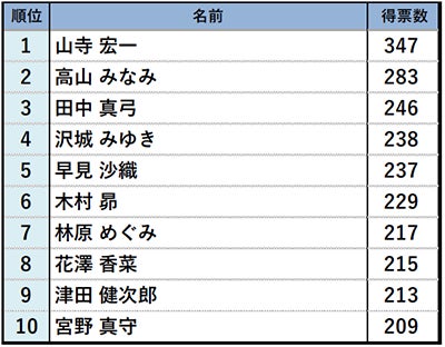男性部門は俳優からアスリートまでと幅広い結果に。女性部門は元気で明るいイメージから大人な魅力のある俳優・タレントがランクイン