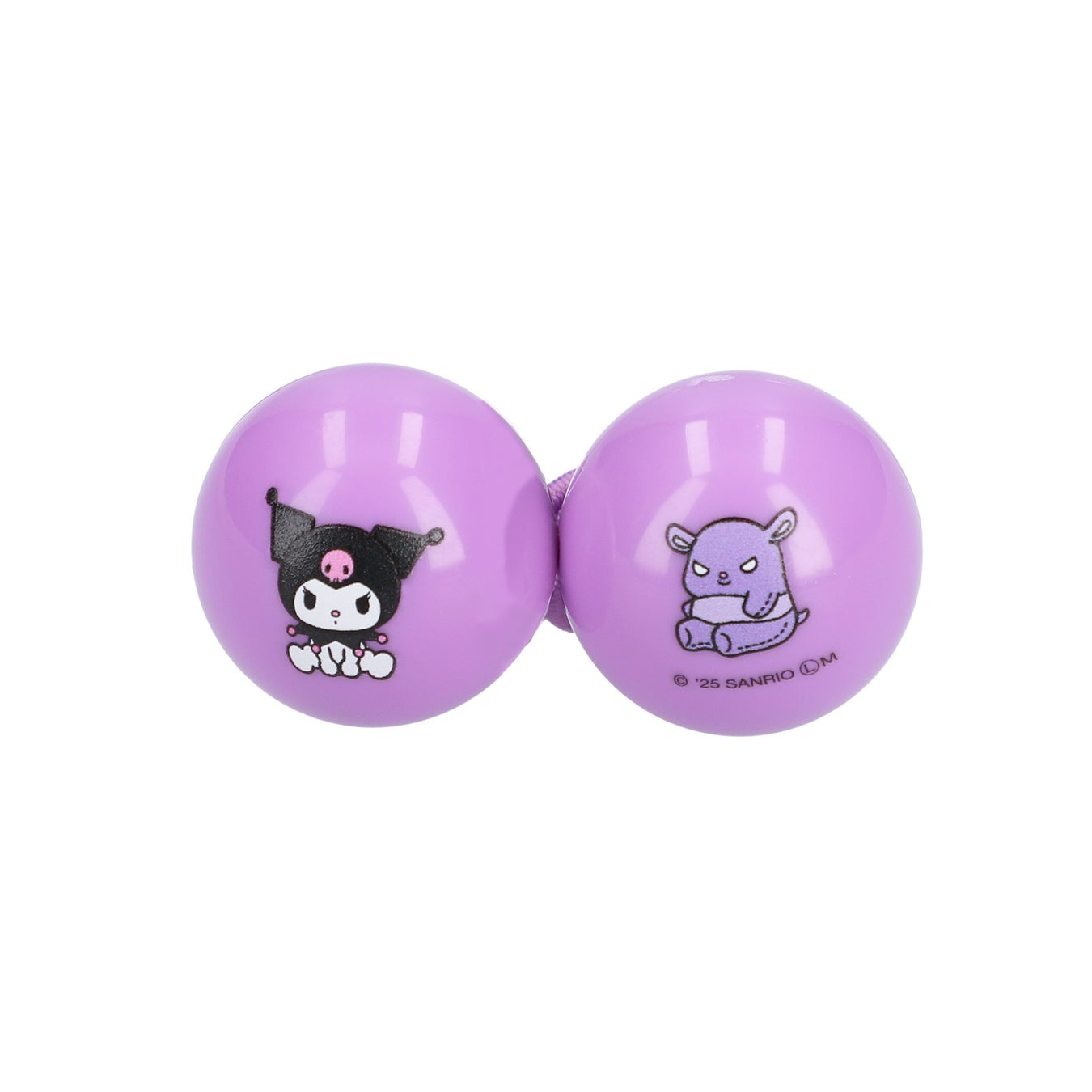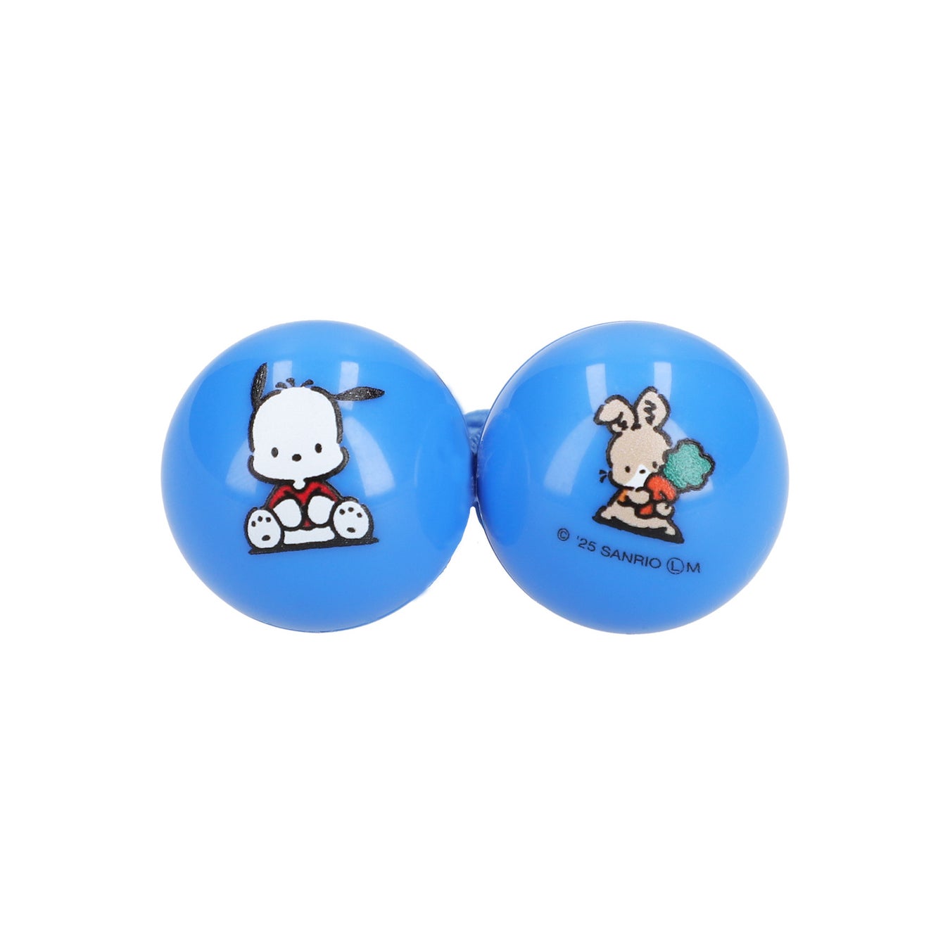 まんまるで大きめの、カラフルなボンボンヘアゴムです。二つに分かれたボンボンのそれぞれに「ハローキティ」と”タイニーチャム”、「ポムポムプリン」と”マフィン”などのサンリオキャラクターをあしらいました。