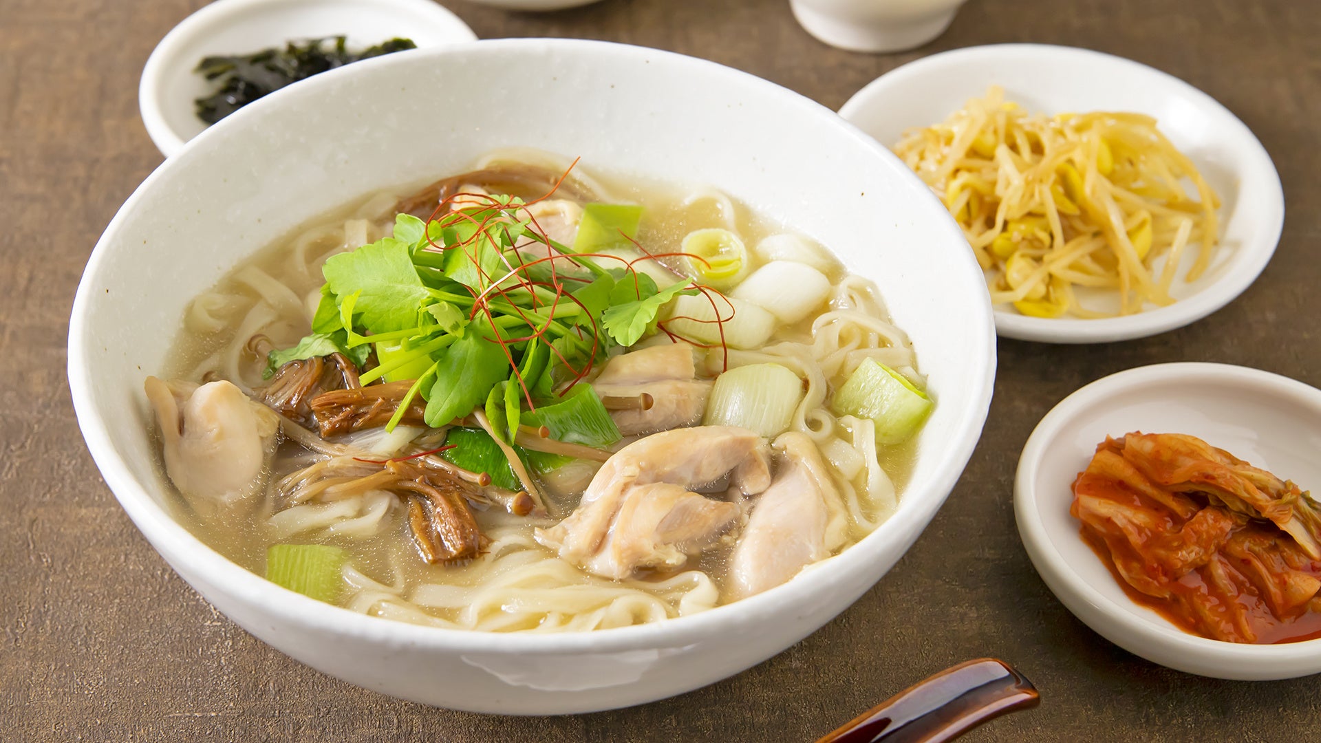 国産鶏の旨みが味わい深い韓国うどん、ビビンバのコリアンランチ。お昼からタッカンマリ食べ放題コースも楽しめます