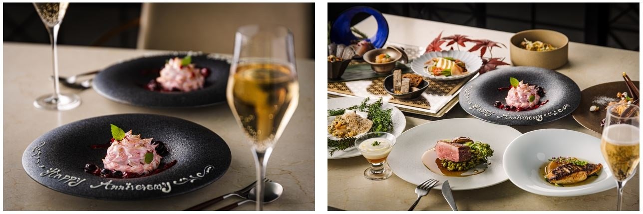 贅沢な「アニバーサリーコース」。翌朝は同レストランにて提供するブッフェスタイルのご朝食で、和洋バラエティ豊かなメニューラインアップをお楽しみください。