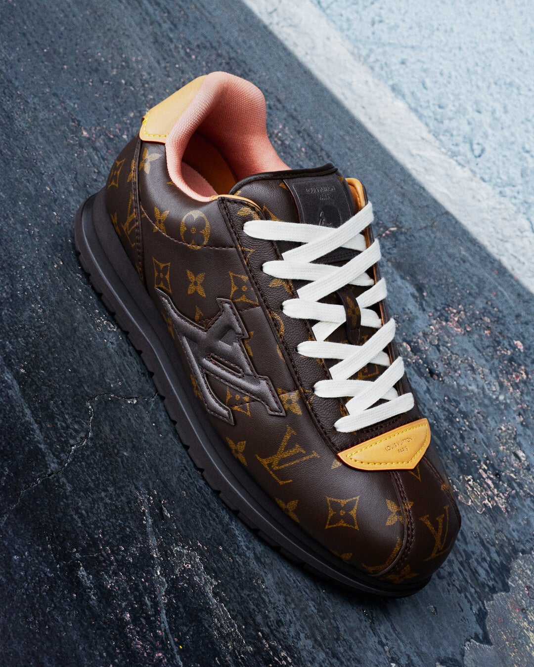スニーカーが初めてファッションアイテムとなった1960年代から着想を得た1足で、ラムレザーとカーフレザーで精緻に仕上げ、しなやかなレザーとパッド入りのアッパーでこの上なく柔らかな履き心地を実現。LV イニシャルやルイ·ヴィトンのレザーグッズを想わせるディテール、2025秋冬メンズ·ファッションショーならではのエンボス加工で施したファレル·ウィリアムスの横顔とロブスターのモチーフなど、複数のシグネチャーがあしらわれた上品なスタイル。