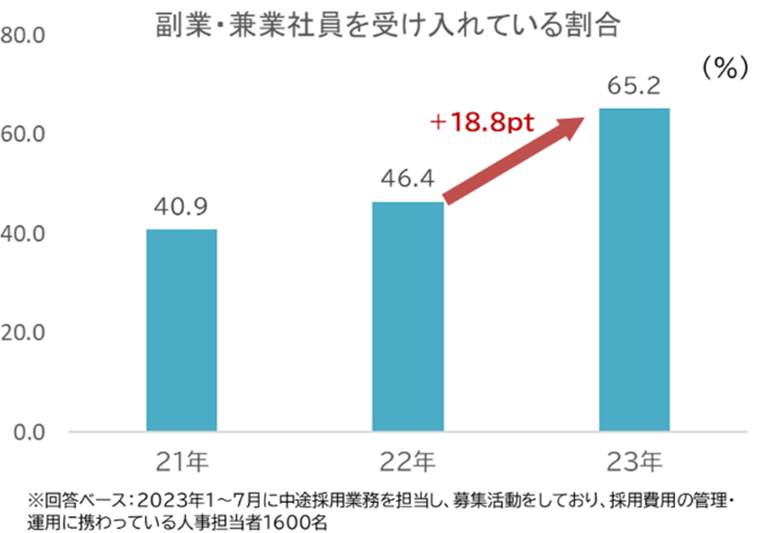 日本国内において中長期的な労働力不足の深刻化が問題視される昨今、その対策の1つとして、副業・兼業人材の受け入れ・活用が注目されています。※1