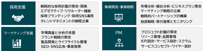 また、交渉から契約、稼働管理、請求・支払いまでを一括管理し、工数の削減や契約トラブルの防止に貢献します。社内外を問わないチーム構築により、生産性向上を目指しています。