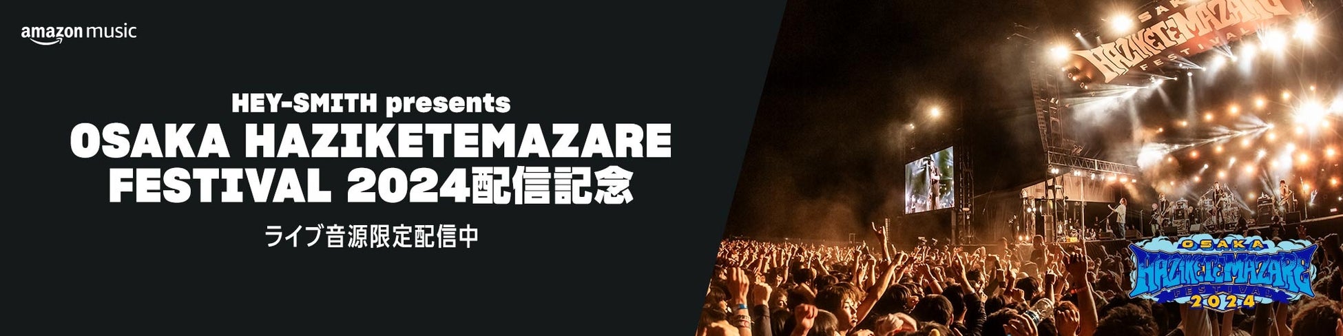 Amazon Musicは、12月10日(火)19 時から、HEY-SMITH主催の「HEY-SMITH Presents OSAKA HAZIKETEMAZARE FESTIVAL 2024」(10月26日、27日に大阪泉大津フェニックスにて開催)のライブ収録映像を、TwitchのAmazon Music Japan チャンネルにて配信します。本配信では、HEY-SMITHが本フェスに出演したアーティストをゲストに迎え、2日間のライブ映像を観ながら振り返ります。