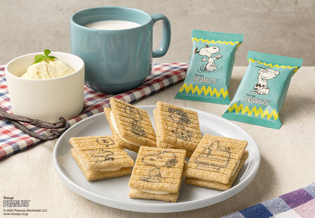 春夏新作フレーバー『ストロベリーシェイク風』。あまずっぱいストロベリーショコラを、国産生乳の練乳パウダーを合わせたシリアル生地でサンドしました。ひとくちで、爽やかな味わいがお口いっぱいに広がるデザートサンドです。もちろん、お菓子や個包装にもスヌーピーと仲間たちをデザイン!それぞれランダムに入りますので、何が出るかも楽しみながら食べてみてください。