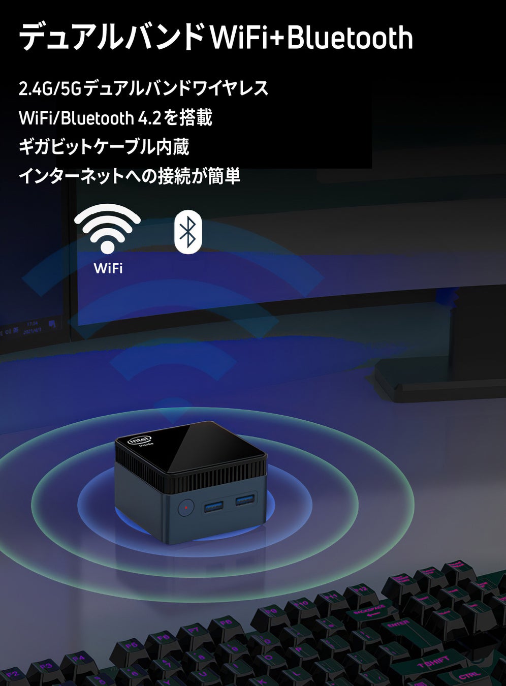 Bluetooth 4.2も搭載し、スマートフォンやマウス、キーボードなどの周辺機器とスムーズに接続可能です。