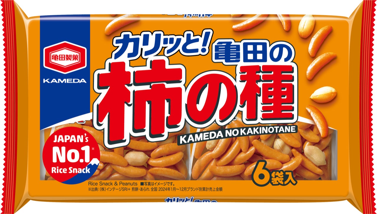 亀田製菓から1966年に発売されたカリッと食感の柿の種とピーナッツを組み合わせたおなじみのお菓子。柿の種とピーナッツの絶妙なバランスや、摘まみやすい小粒な形状、中身を空洞にすることで生まれる独自の「カリッ」とした食感が特徴。