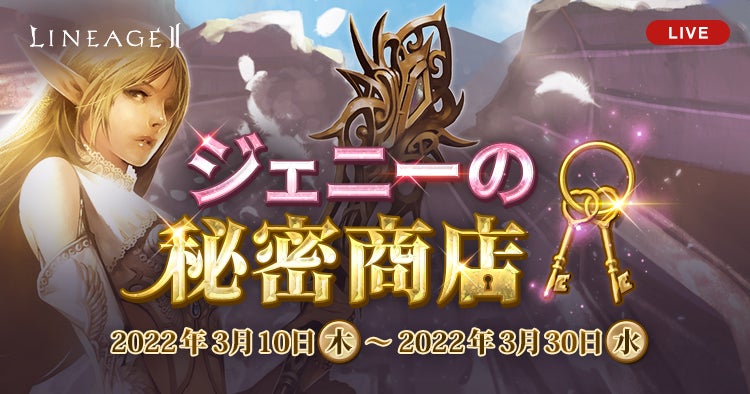 PC向けオンラインゲーム『リネージュ2』をサービス、運営しているエヌ・シー・ジャパン株式会社(東京都港区、代表取締役:金 澤憲(キム テクホン)は、本日2022年3月10日(木)に、ライブサービス/クラシックサービス/アデンサービスの3サービス同時アップデートの実施、ならびに各種イベントの開催をお知らせいたします。