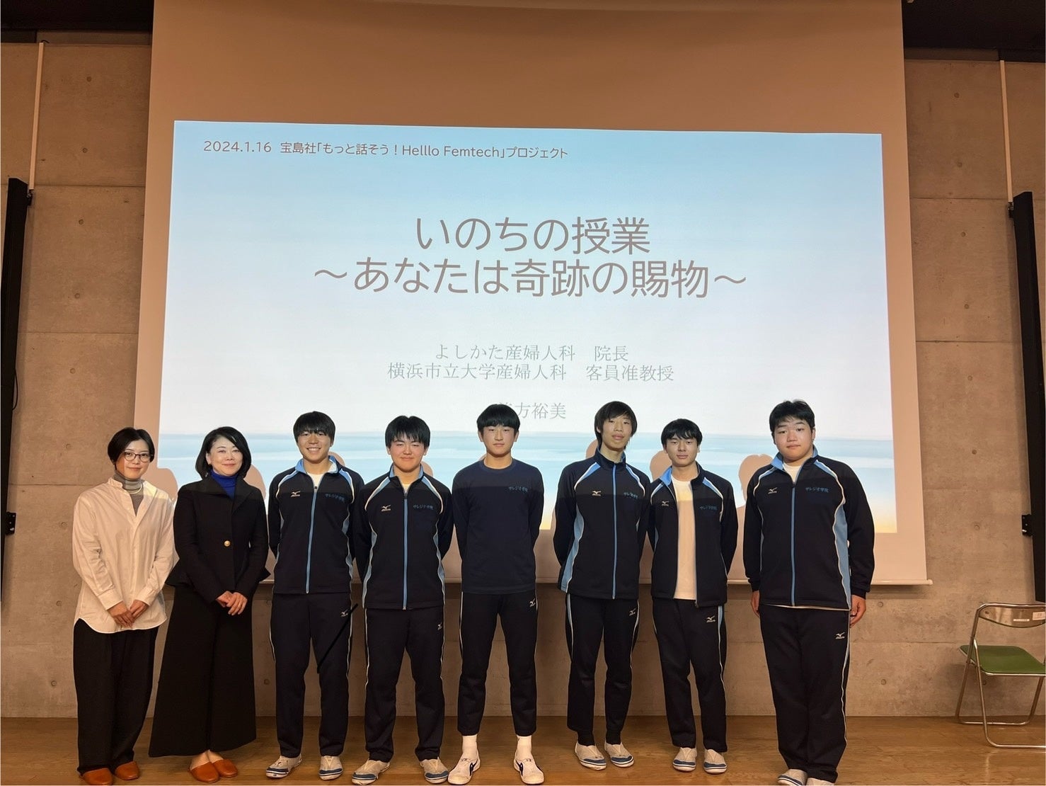 宝島社は「もっと話そう!Hello Femtech」プロジェクトを続けるなかで、女性の健康問題に対する男性理解の重要性を実感したことから、これからの未来を担う世代への啓発として男子校での性教育授業を実施しています。