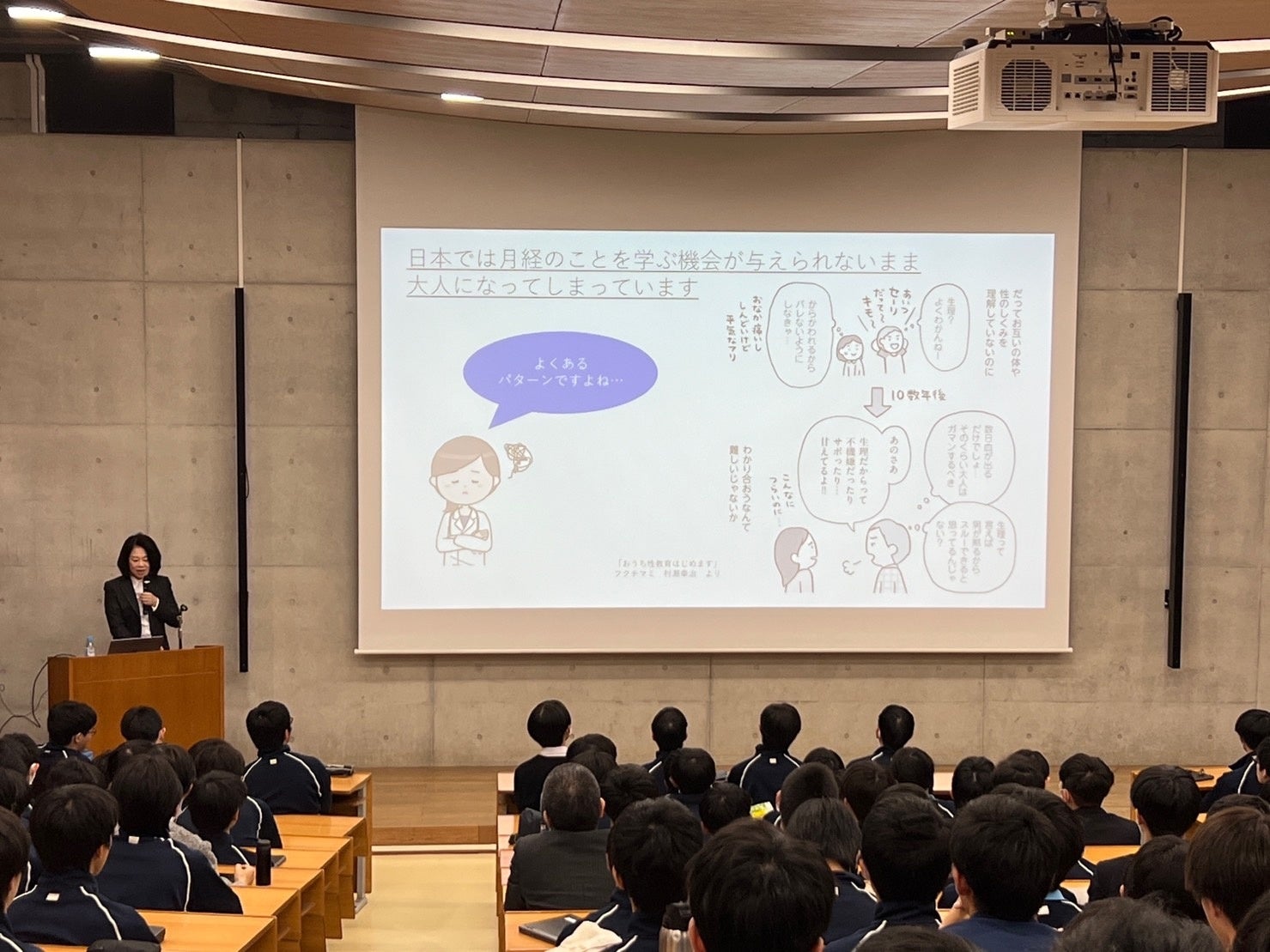 「男子校で生理痛についての話!?」この講演会のご依頼をいただいた際、そんな取り組みがあったのかと率直にビックリしました。しかし、いざ授業をさせていただくと、男子高校生の「知る」「理解する」ことへの前向きな意欲があふれ出して、実に楽しく盛り上がった時間になりました。ぜひ、全国各地にこの有意義な会を広めていただきたいと思います。