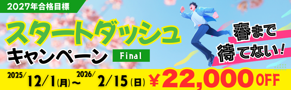 今だけ!2027年合格目標 先取り学習つき総合本科生が¥2.2万円OFF!