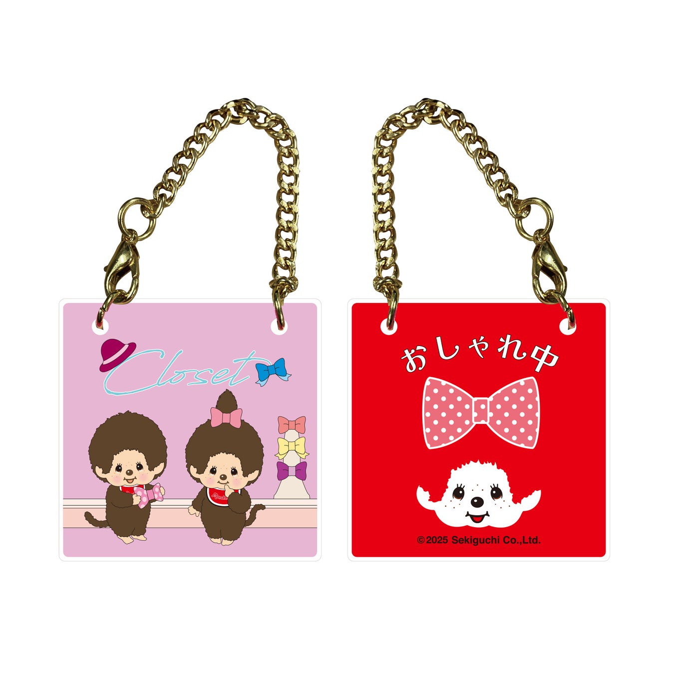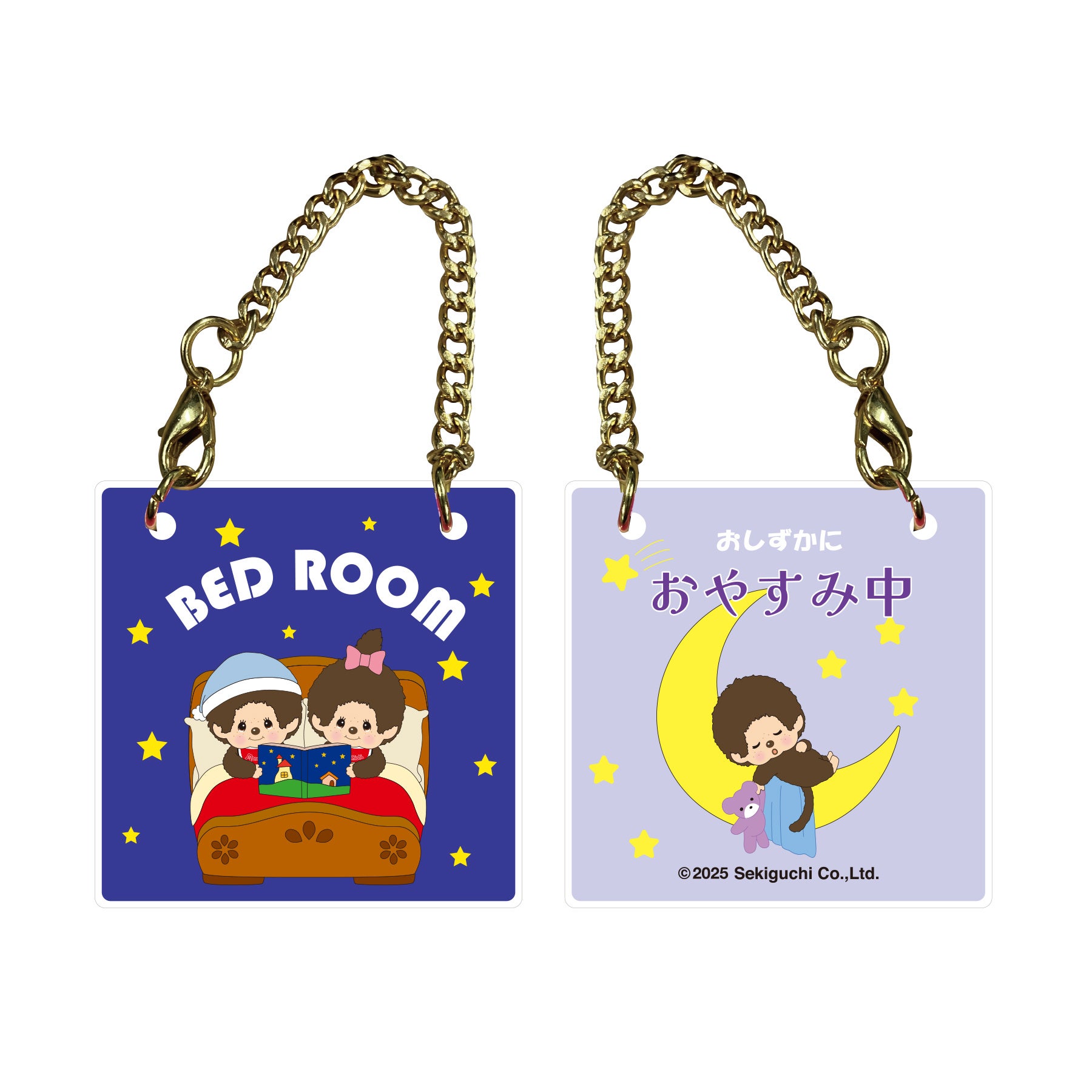 日常のさまざまなシーンをモンチッチたちで表現したデザインの、ドアプレートをモチーフにしたチャームが登場します。