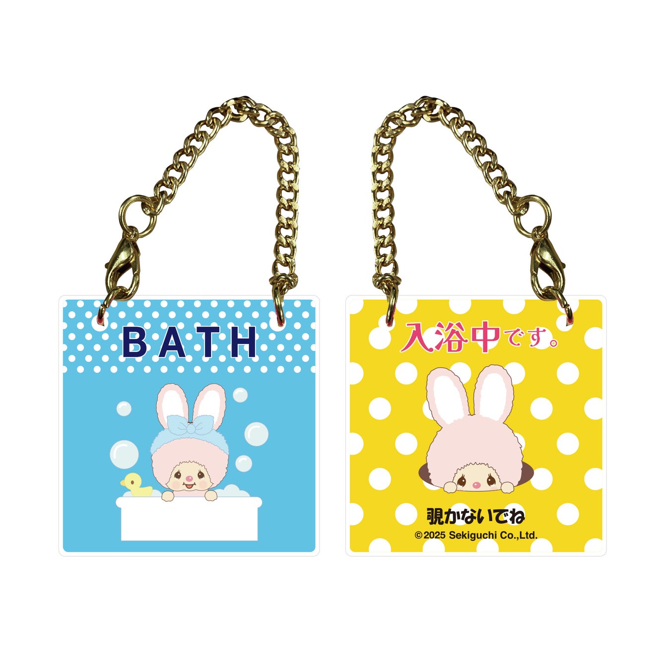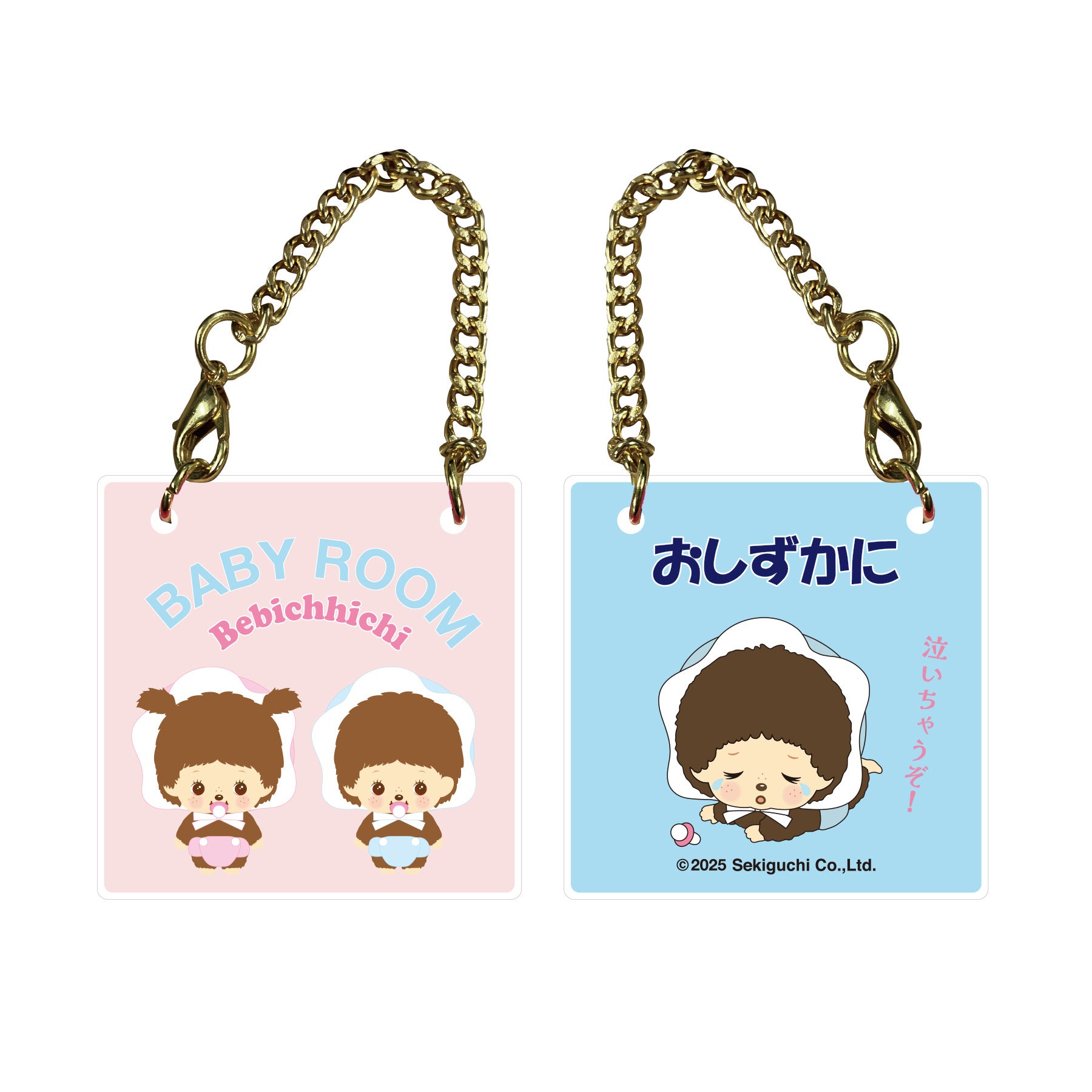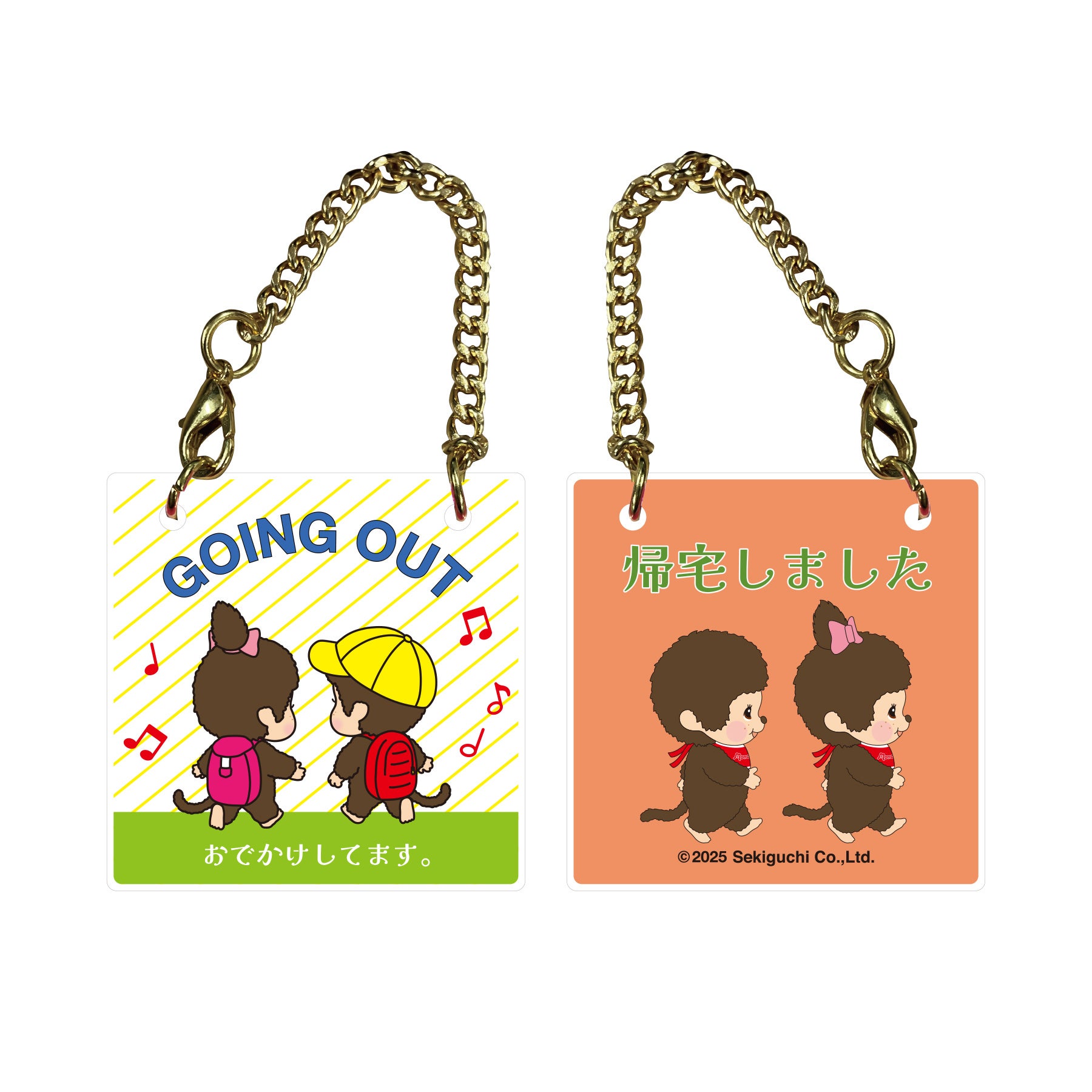 チェーン付きで、実際のドアプレートのようにドアやドアノブに掛けて使用するのはもちろんのこと、ご自身のモンチッチのぬいぐるみに持たせてお部屋に飾ったり、バッグに付けてお出かけしたりするのもおすすめです。