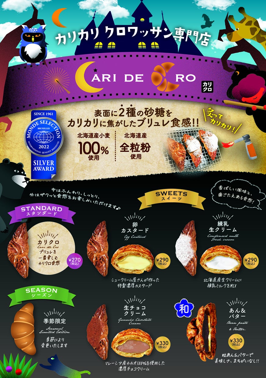 カリクロ自慢の1つ1つブリュレしたクロワッサンは、耳まで響く‶カリッと・サックサク食感″で、噛めば噛むほど北海道産小麦や全粒粉の風味豊かな味わいに心が弾みます。 又、口の中に広がる風味豊かなバターの味わいとコクに、食べるだけで幸せな気分に包まれます。