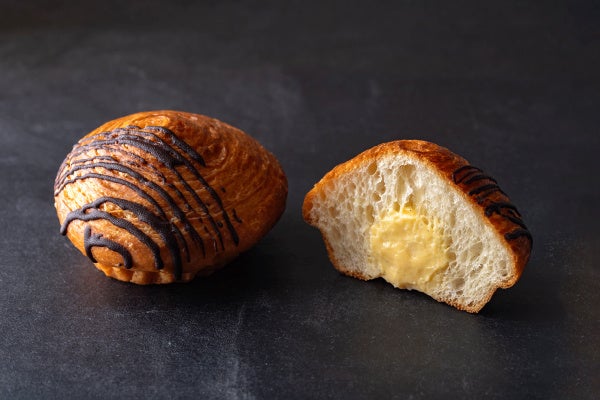 今回の新作「カスタードマウンテン」は、この特別な生地の中に、なめらかでとろけるような自家製カスタードクリームをたっぷりと詰め込みました。しっとりとしたデニッシュ生地、レモンがほのかに香る軽めのカスタードが織りなす、至福のハーモニーをお楽しみいただけます。食欲の秋にぴったりな、新しい味わいの「カスタードマウンテン」を、ぜひこの機会にご賞味ください。