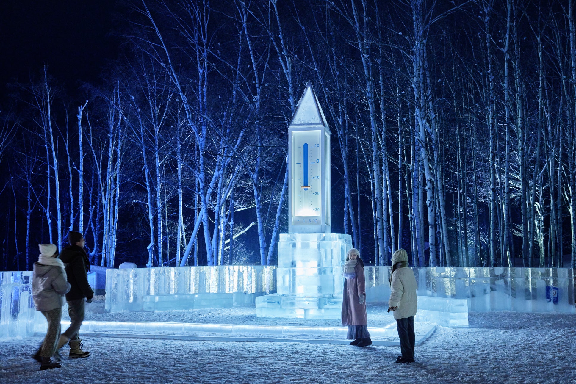19:45 「氷の気温塔」で記念撮影