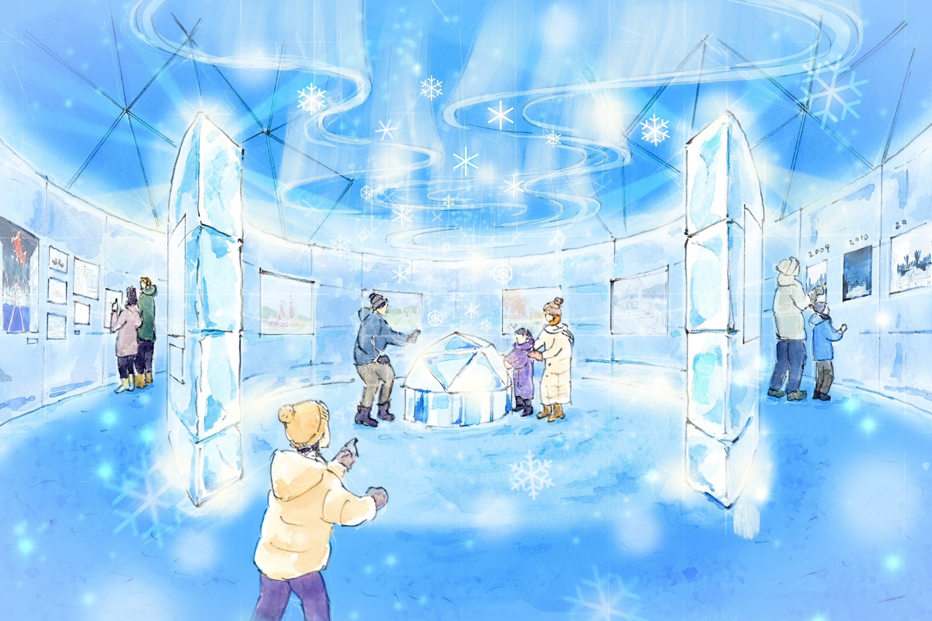 氷の教会誕生の物語と、20年の歩みを紹介する「氷の美術館」が新たに登場します。ドーム中央の「ストーリールーム」では、氷のオブジェや彫刻で、氷の教会とアイスヴィレッジの誕生ストーリーを伝える展示が広がります。さらに、歴代の氷の教会の写真と年ごとの歩みを体感できる展示を設け、20年にわたる変遷を紹介。氷の美しさとともに、その歴史や想いに触れることで、氷の教会が大切にしてきた価値をより深く感じられる空間です。