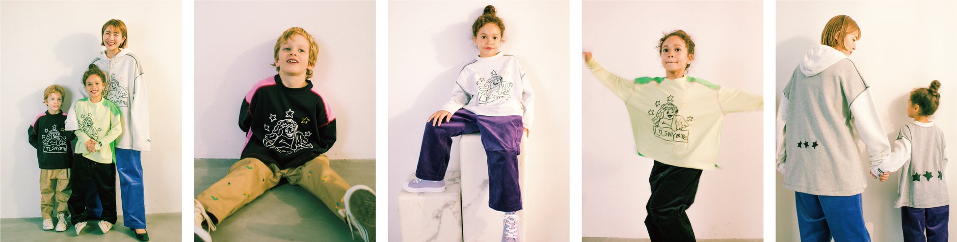 Little Sunny Biteは、「カワイイ」を追求し世界に発信するクリエイティブディレクター兼デザイナーYOPPYが2014年に立ち上げました。世界のアーティストとのコラボをはじめ、海外のファンが多くいるアパレルブランドです。 Little Sunny Biteの「カワイイ」世界観やデザインと、「素直に好きと思えるモノを手に取り、ハートで感じて欲しい。 」というコンセプトに共感し、今回のコラボレーションにいたりました。コラボレーションアイテムは、女の子はもちろん、男の子にも楽しんでもらえるようなプリントやシルエットにこだわったトップス、ラインのきれいなパンツやリバーシブルで着用できるアウターなど計5型を展開します。