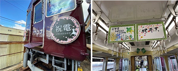 能勢電鉄では、この春から新たな一歩を踏み出す沿線のお客様へ向け、車両を祝福メッセージで彩った卒業列車“祝電(しゅくでん)”(1編成)を、期間限定(2月18日(土)~3月31日(金))で運行します。