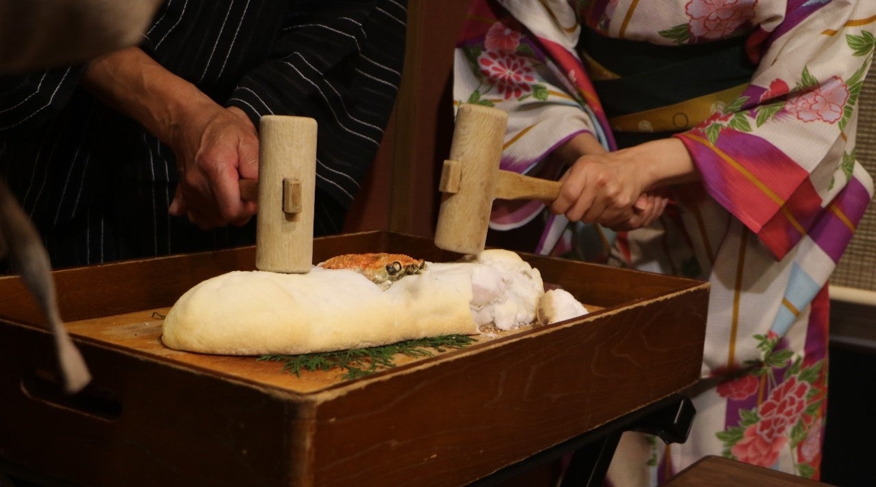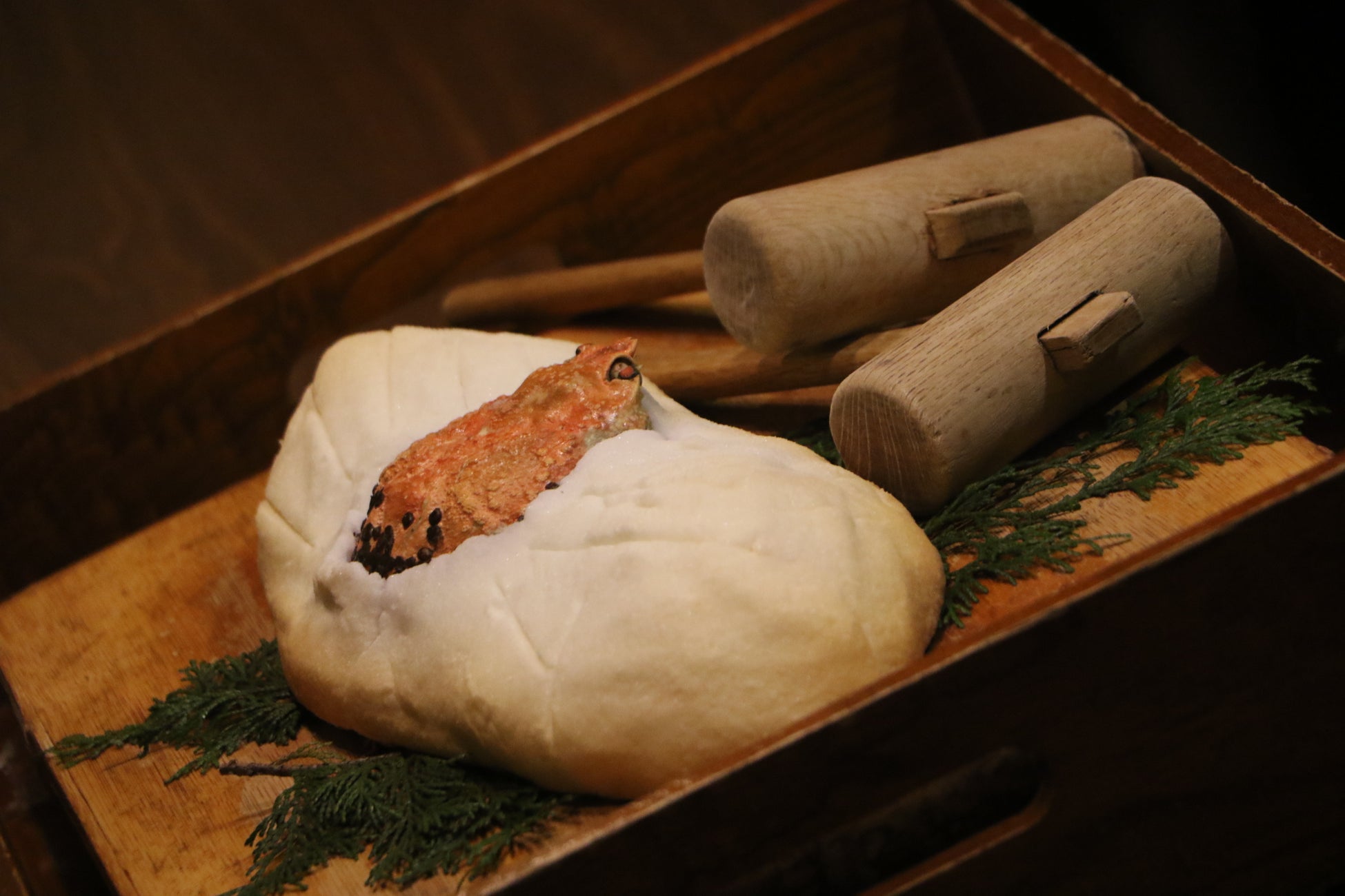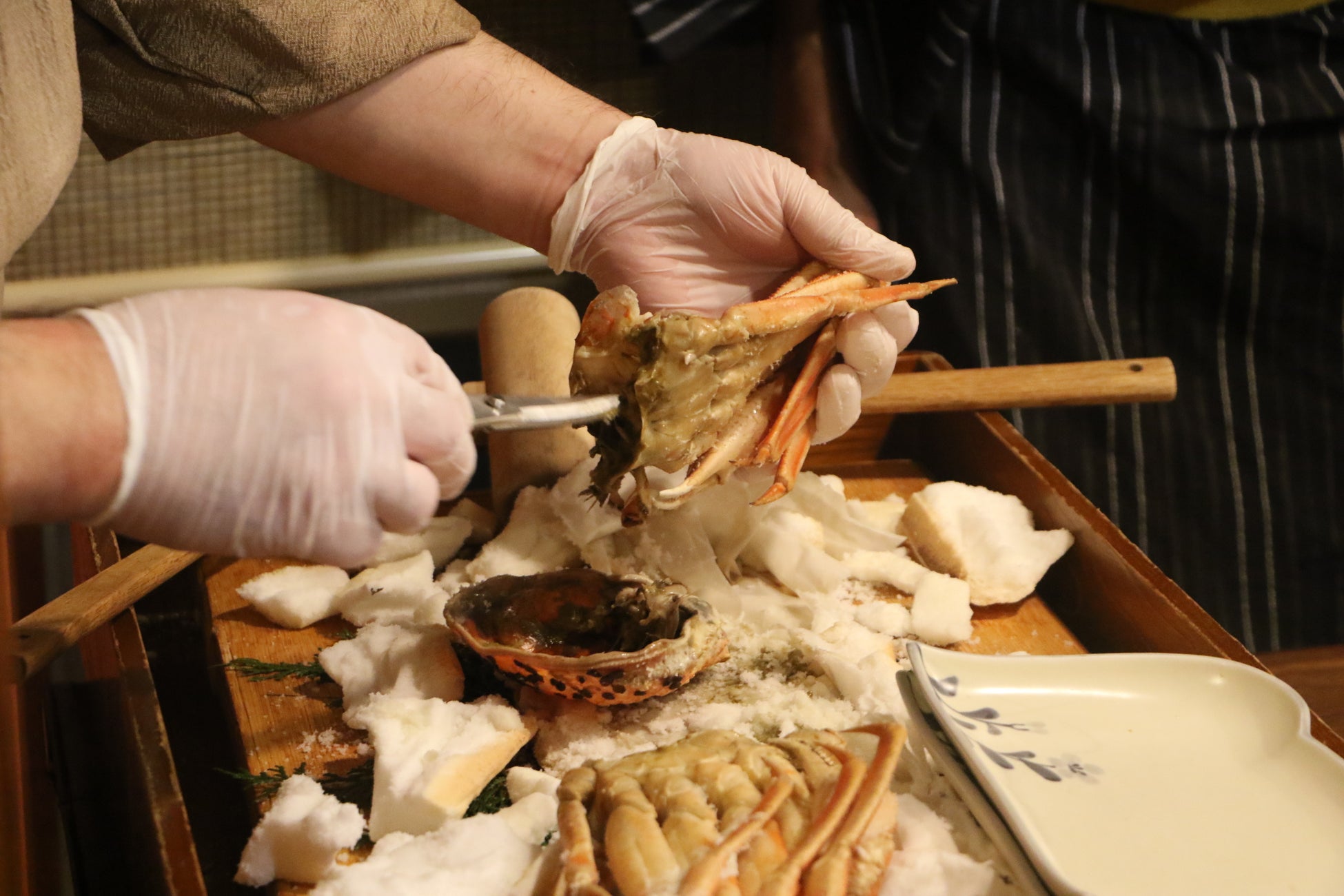 さらに“焼きガニ”と“蒸しガニ”のいいとこどり?!名物『かに かまくら』もいただきます。