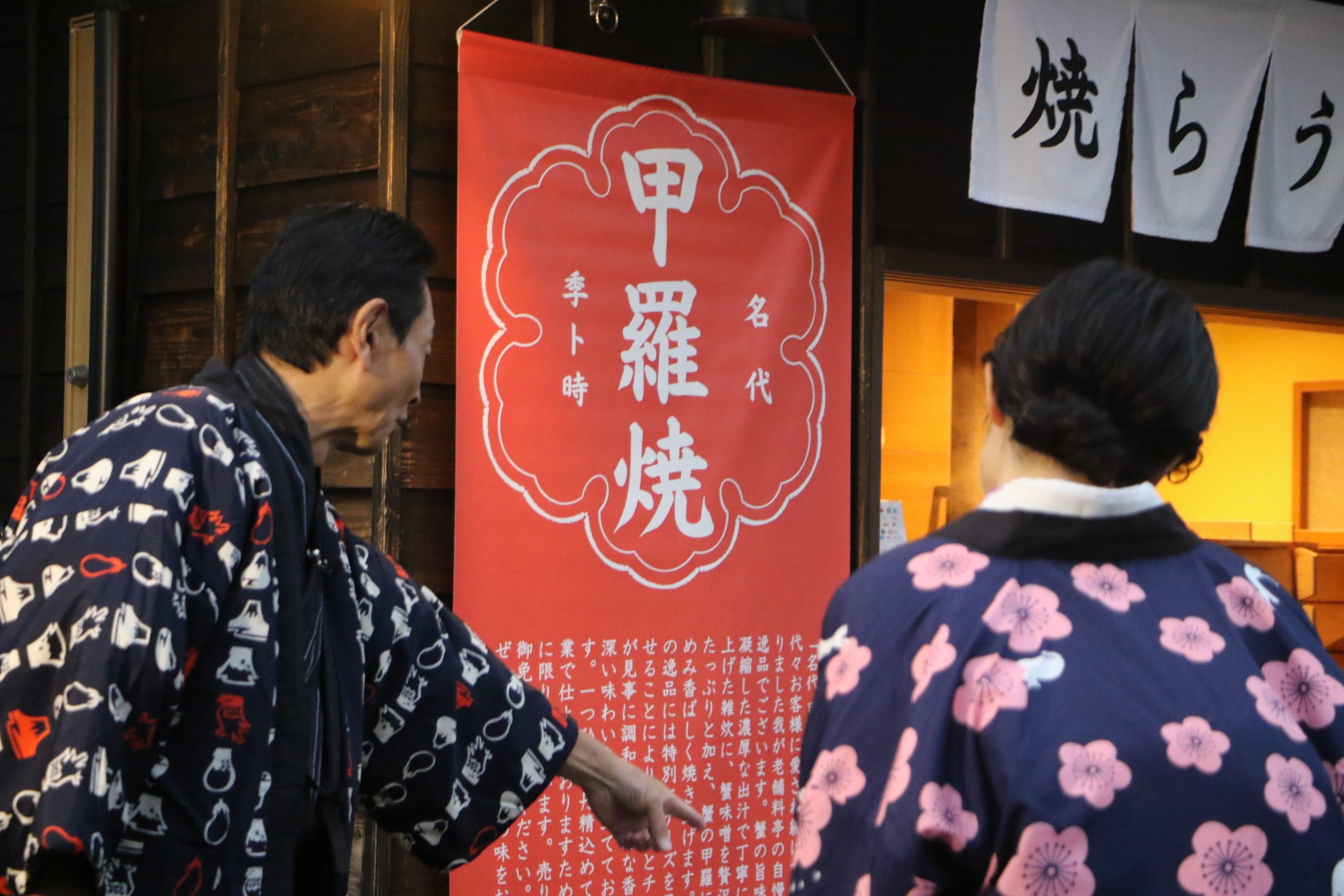 途中、販売数は1日限定100個!カニの地域ならではの食べ歩きメニュー『甲羅焼』のお店にも立ち寄りつつ…。