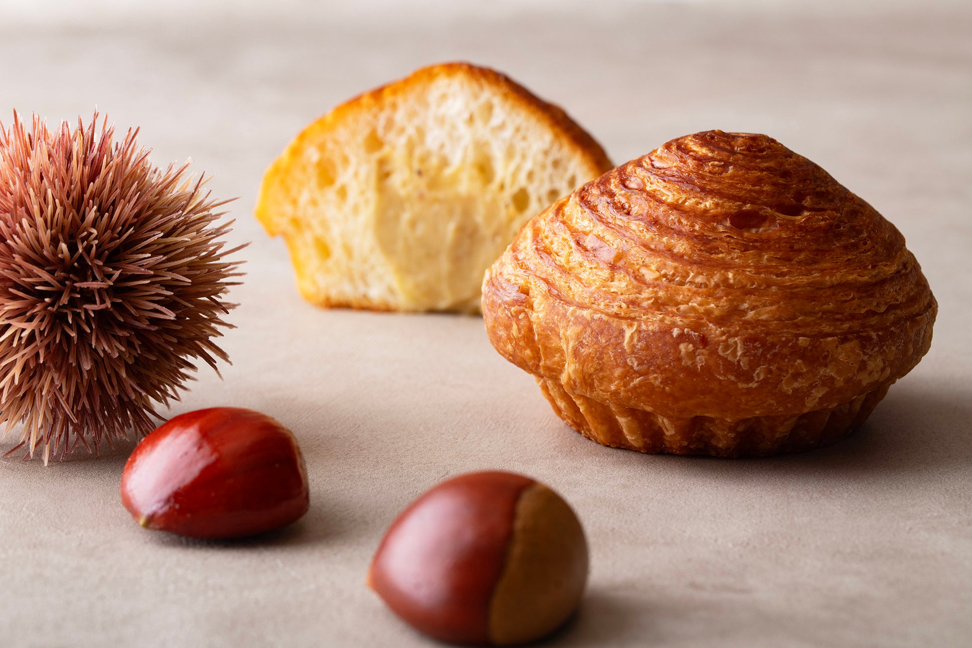 和栗のシロップに浸したデニッシュパン「マウンテン」に、和栗とカスタードを合わせた濃厚なクリームを閉じ込めました。