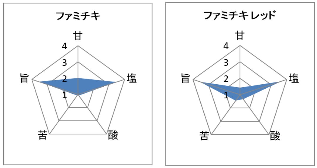今回、「ファミチキ あげあげ祭」をさらに盛り上げるべく、食や飲料の相性を科学的に分析できるAI味覚センサーを用いた「ファミチキ×お酒」のペアリング調査を実施しました。調査では、5つの基本味「甘味」「塩味」「酸味」「苦味」「旨味」に分解して数値化し、ファミチキ、ファミチキ レッドとファミリーマートのプライベートブランド「ファミマル」のお酒8種の相性を調査しました。