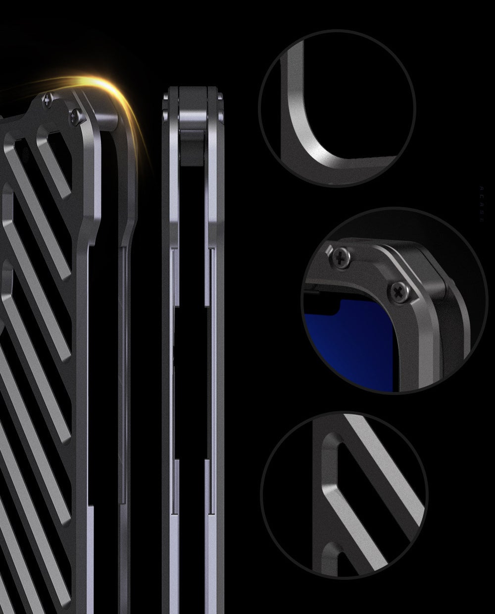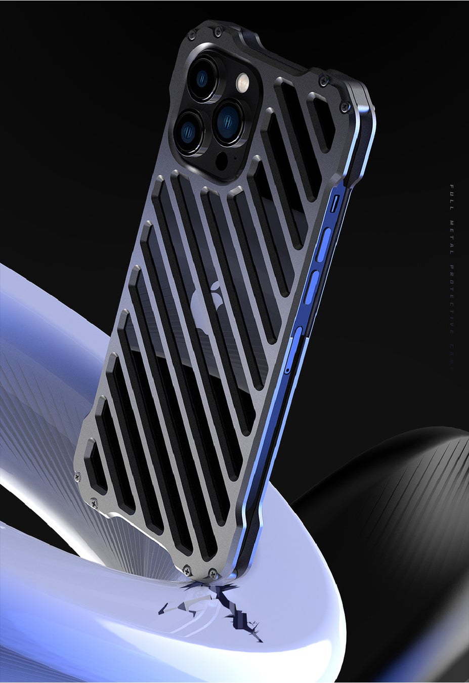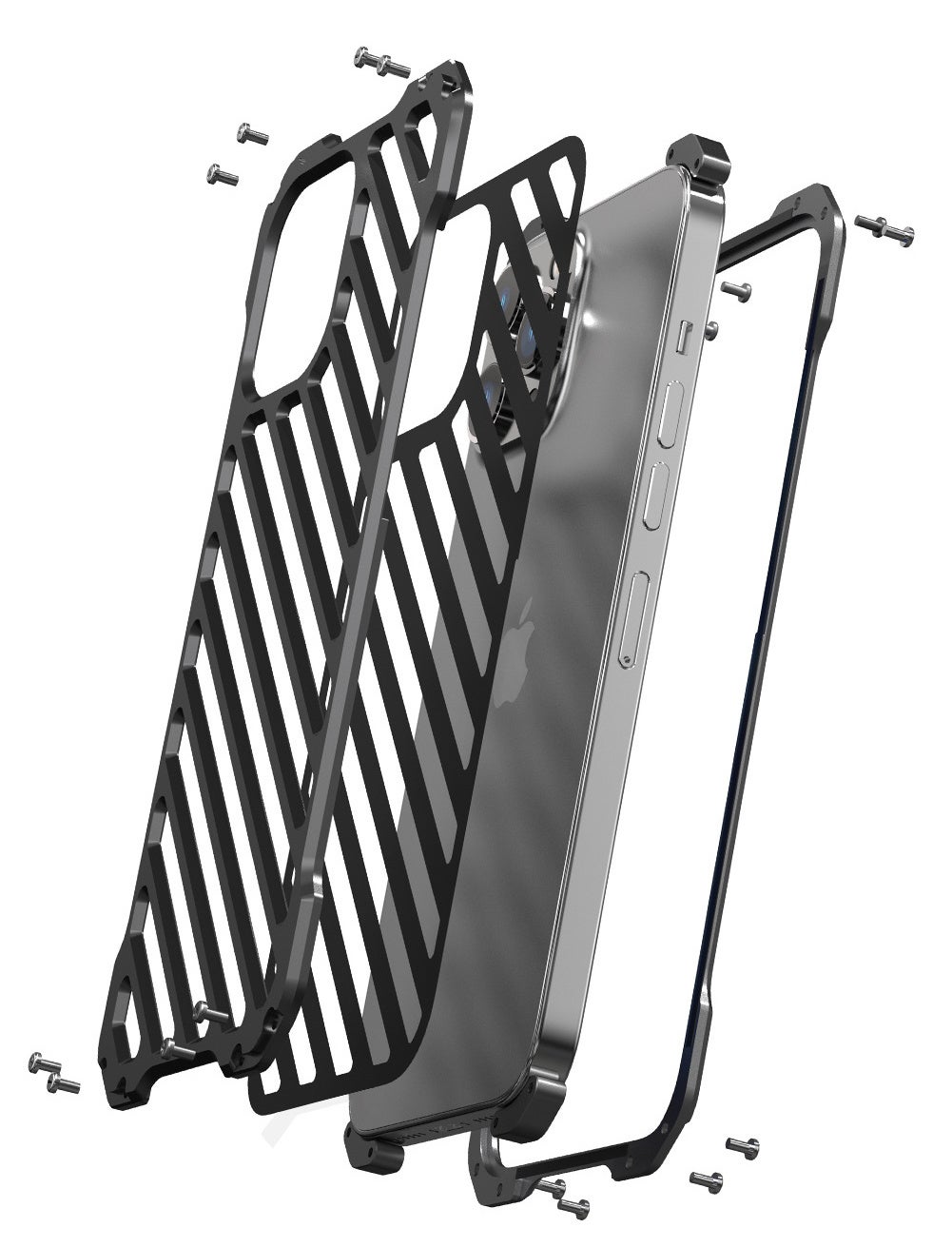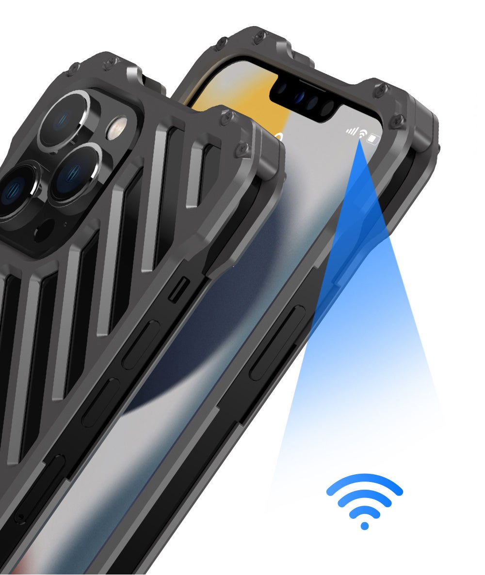 iPhoneを高級感あるアルミ合金シェルで包み込み、ケースにスリット加工を施すことでスマホを効率的に冷却します。