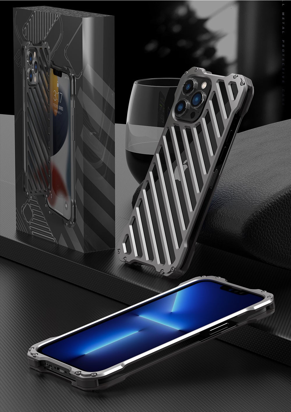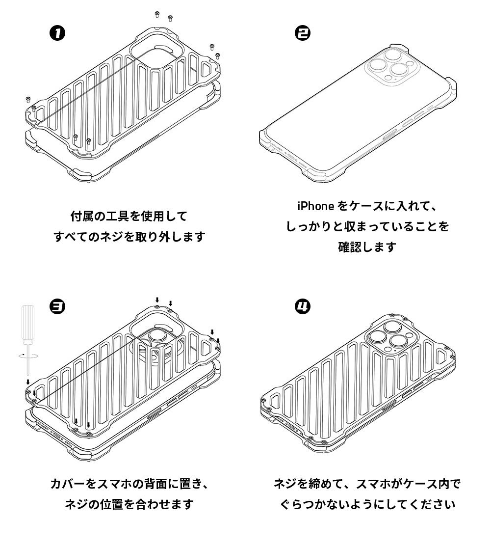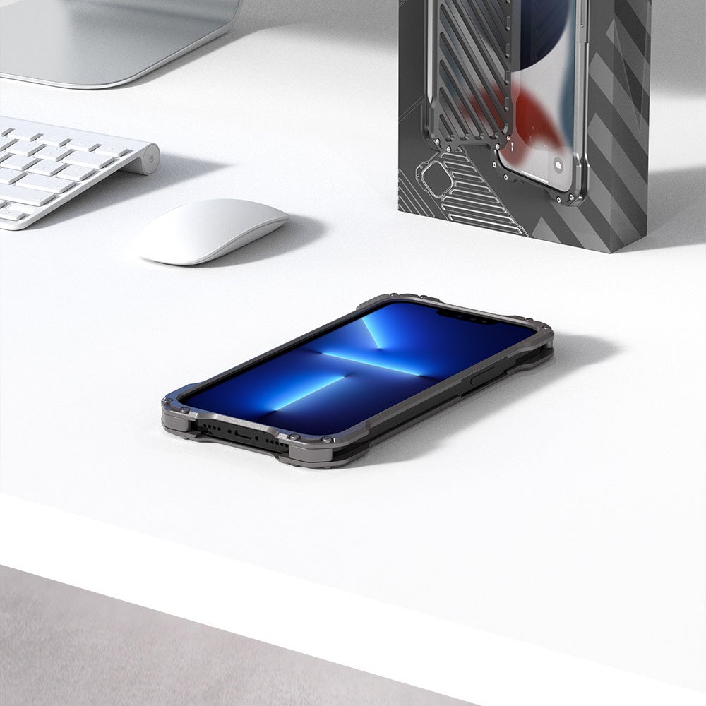 「AlGuard(エーアイ・ガード)」はiPhone13、iPhone14シリーズ向けの重厚な金属感が人目を引くフルメタル・ケースです。