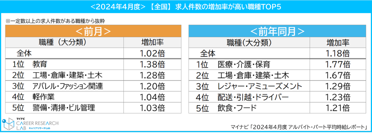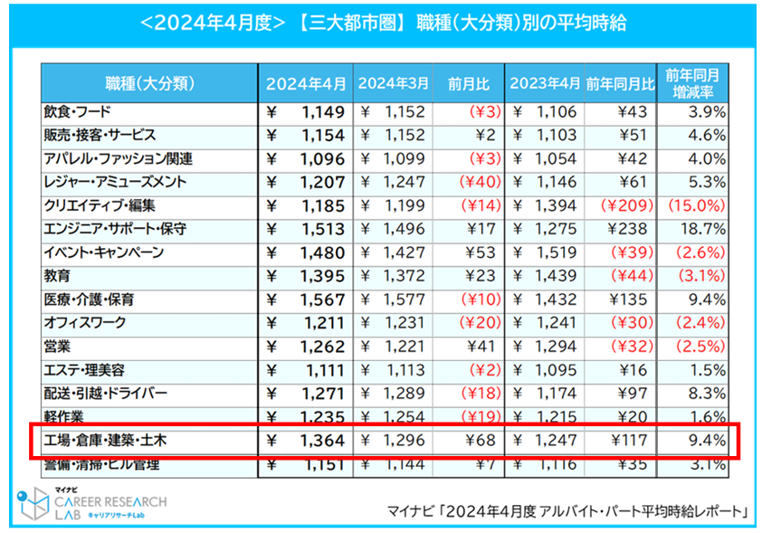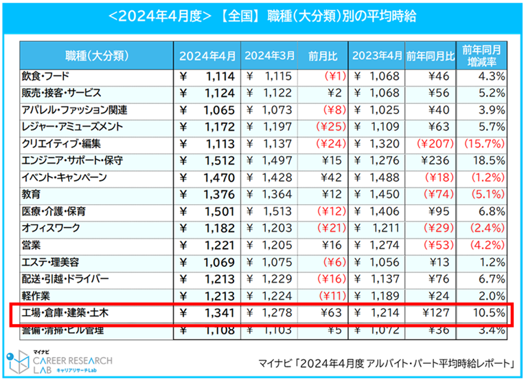 『2024年4月度 アルバイト・パート平均時給レポート』