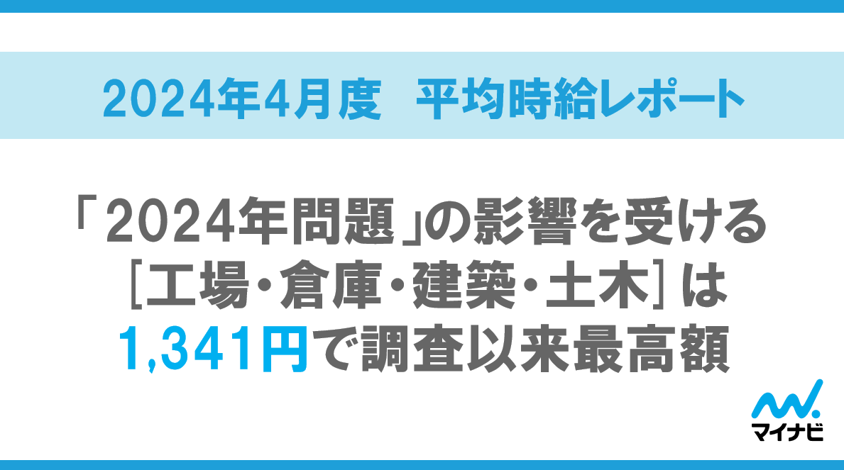 「2024年問題」の影響を受ける[工場・倉庫・建築・土木]の時給は1,341円で、調査開始以来最高額に