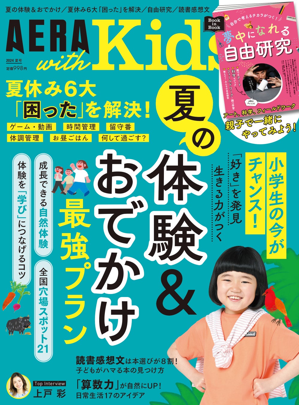 小学生や未就学児を持つママ・パパたちに子育て情報を届ける「AERA with Kids 2024年夏号」が2024年6月5日(水)、発売になりました。巻頭は、「小学生の今がチャンス!夏の体験&おでかけ最強プラン」を大特集。このほか、時間管理・留守番・ゲーム動画の見過ぎなど夏休みの6大「困った」解決特集や、自由研究、読書感想文、算数力UPアイデアなど、夏を楽しく&ストレスフリーに過ごすためのお役立ち情報が満載です。表紙は人気子役の永尾柚乃さん、インタビューには上戸彩さんが登場しています。