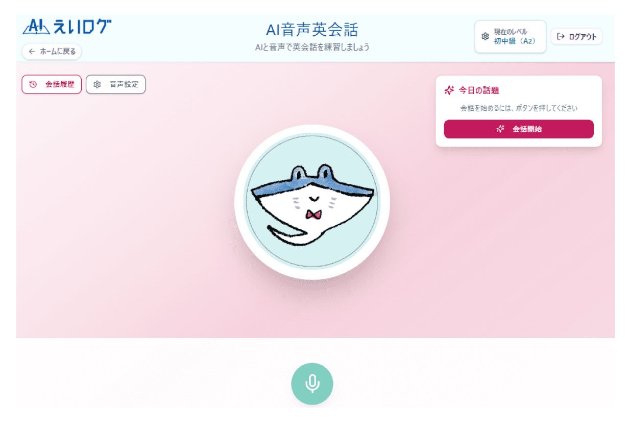 書いた日記の内容を元に、AIと英会話の練習ができる「AI音声学習」機能も用意しています。生徒はただ日記を書くだけでなく、自分の言葉として、「話す」練習を繰り返すことで、表現の定着を図り、スピーキングへの自信を育みます。