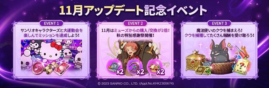 本アップデートを記念して、様々な報酬を獲得できる「11月!秋のミューズ特別感謝祭」や「魔法使いクウ捕獲イベント」などのイベントも開催しております。