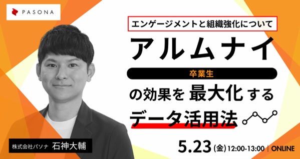 株式会社パソナは採用に関わる経営層の方、人事のご担当者様へ向けたウェビナー「アルムナイの効果を最大化するデータ活用法~エンゲージメントと組織強化について~」を、5月23日(金)に開催いたします。