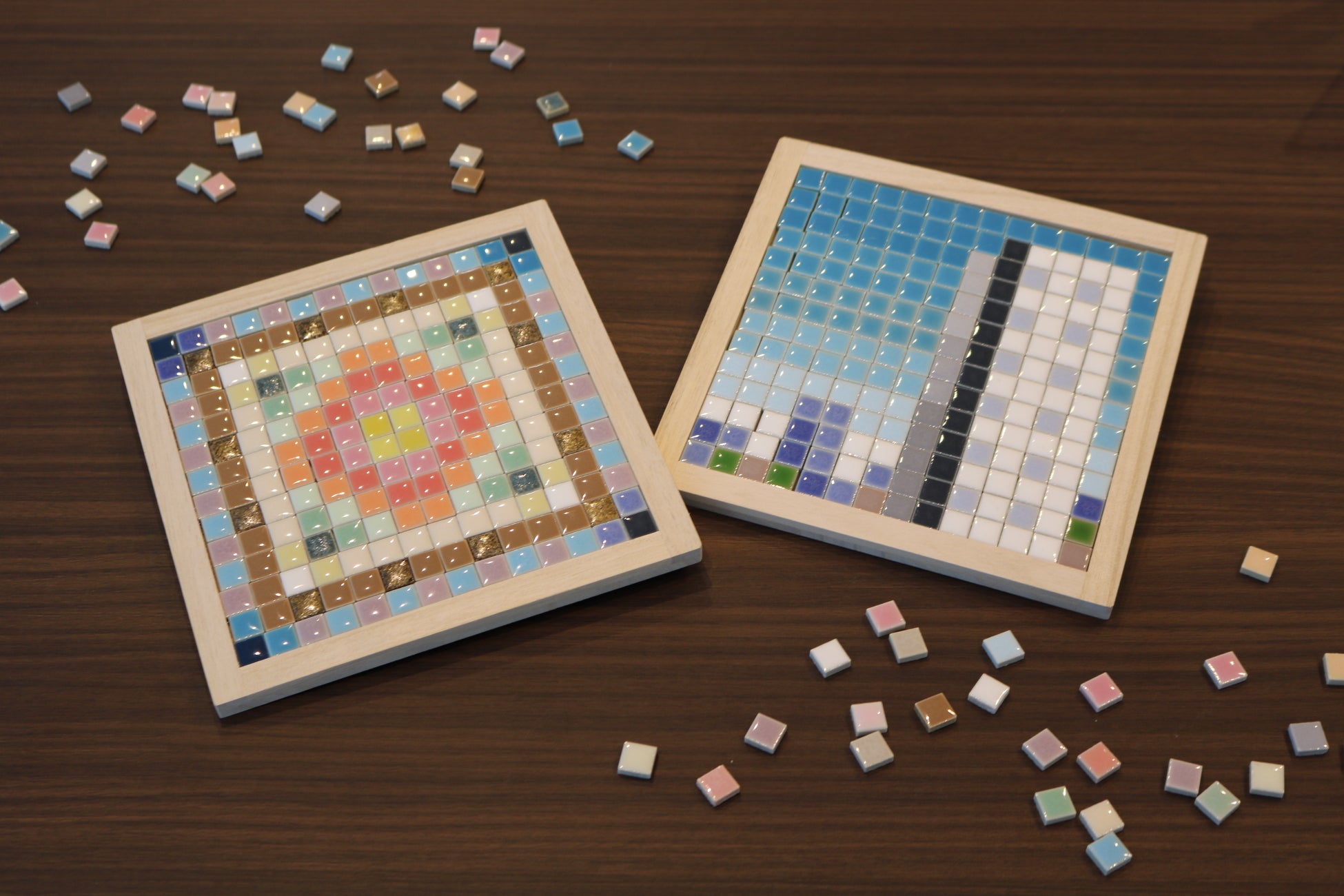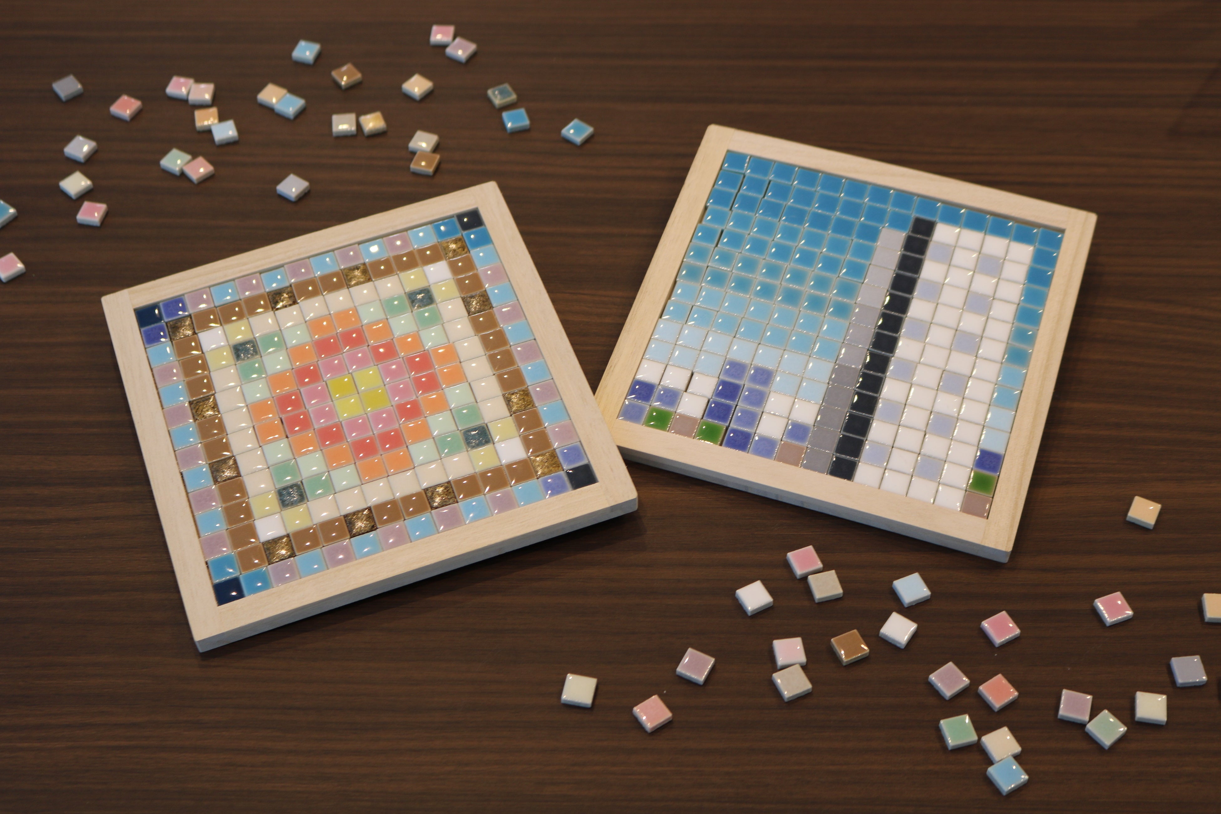 美濃焼タイルは、タイルの一大産地である東濃西部地域(多治見市など)で焼成された陶磁製タイルで、1300年以上の歴史があります。タイルバイキングからお好きなタイルをお選びいただき、フレームに敷き詰めていただくことで世界に一つだけのアートをお作りいただけます。または、ご宿泊の思い出に名古屋プリンスホテルの外観を再現できるモザイクアートセット(196粒)もご用意しております