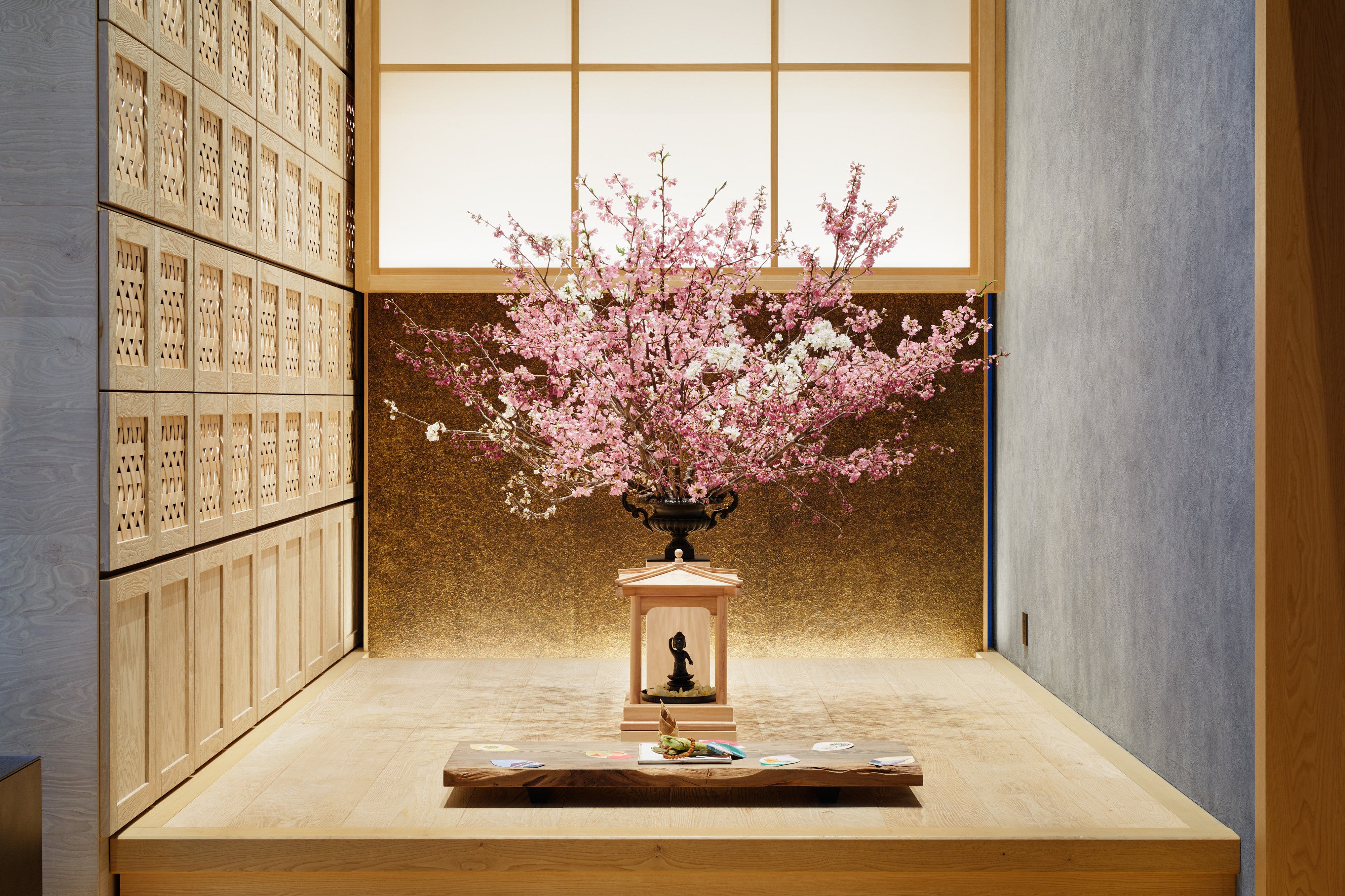 「花の開花」は、春の始まりの情景を表す言葉として日本ではよく使われます。人生の節目や門出を迎えるこの時季に、星のや東京スタッフと専属の華道家と一緒に、滞在中に利用する客室や共有スペースに花を設え、大切な人にさりげなく想いを伝えます。ご出発前には、室礼に使用した花を用いてお花箱を作り、ご自宅に持ち帰ることも可能。大切な人と過ごすかけがえのない時間です。