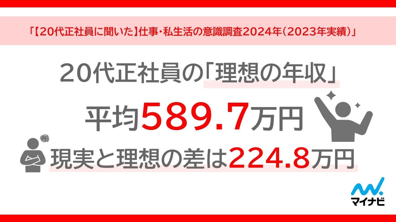 20代正社員の「理想の年収」は平均589.7万円、 実際の年収は平均364.9万円となり、理想と現実の差は224.8万円。4人に1人以上が子どもを持つことに消極的、理由は「金銭的な不安」
